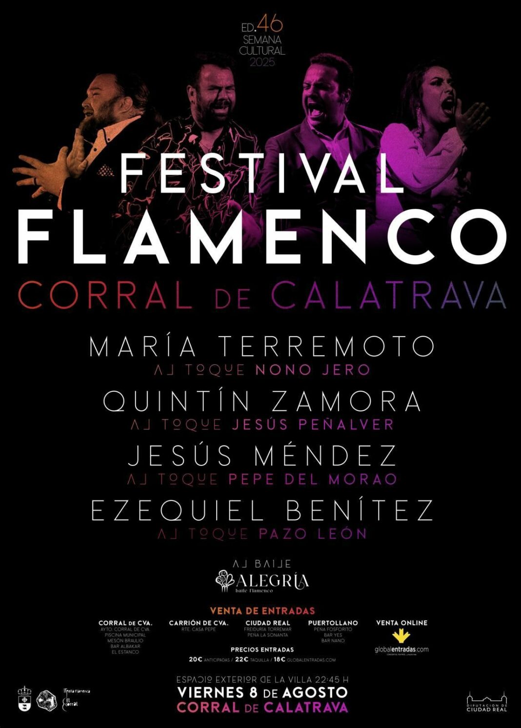Corral de Calatrava se prepara para vivir este viernes, a partir de las 22,45 horas, uno de los momentos más esperados del año: la celebración del XLVI Festival Flamenco, un evento que forma parte esencial de la XLVI Semana Cultural, que se está desarrollando del 1 al 9 de agosto. La localidad se vestirá de gala para acoger una de las veladas flamencas más importantes de Castilla-La Mancha, en un nuevo escenario al aire libre del Auditorio Municipal, recientemente estrenado tras una inversión municipal de 145.000 euros.
