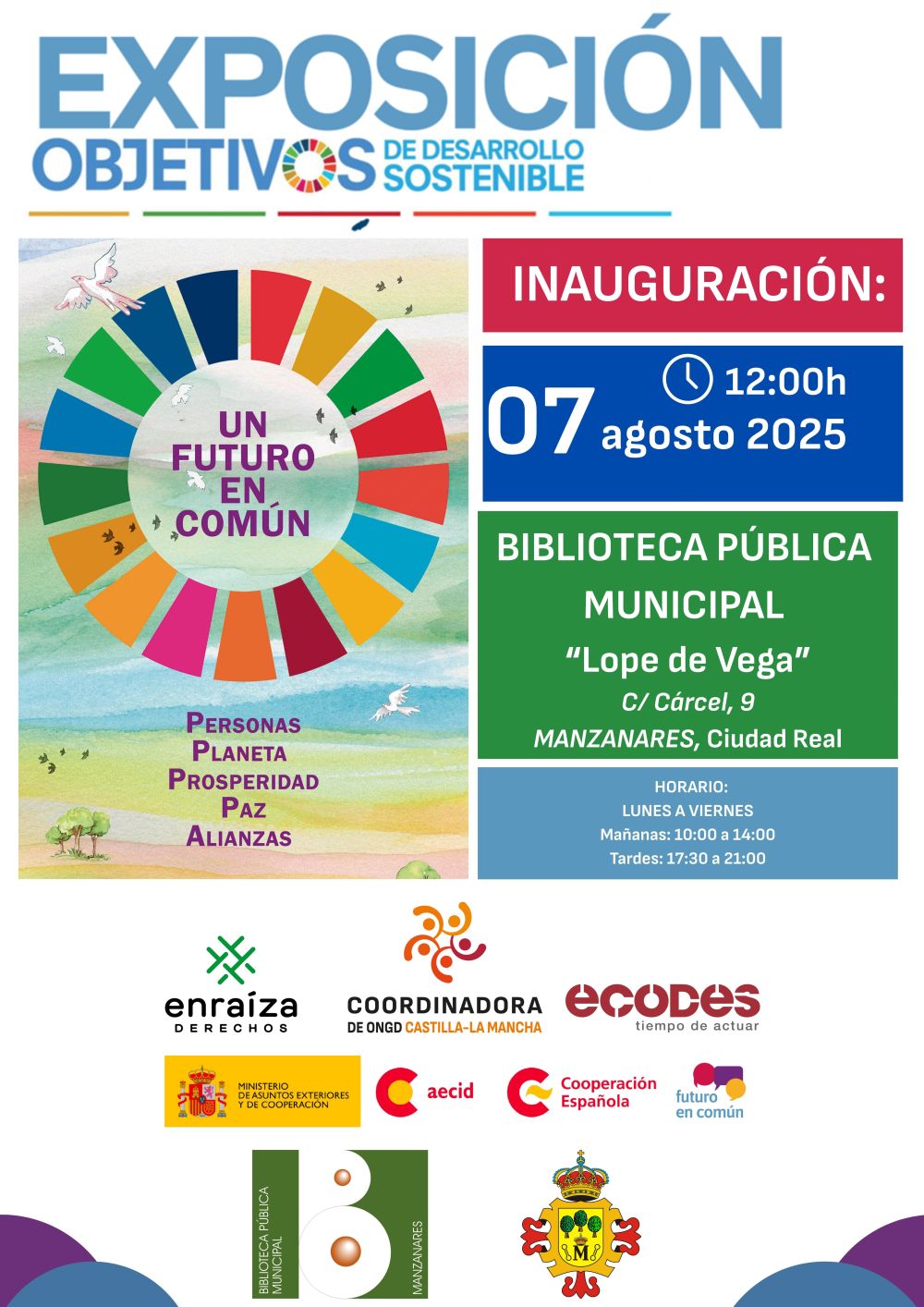 Este jueves, 07 de agosto, se inaugura en la Biblioteca Municipal de Manzanares la exposición “Objetivos de Desarrollo Sostenible: Un Futuro en Común”, una muestra que tiene como objetivo acercar a la ciudadanía los 17 Objetivos de Desarrollo Sostenible (ODS) promovidos por las Naciones Unidas.