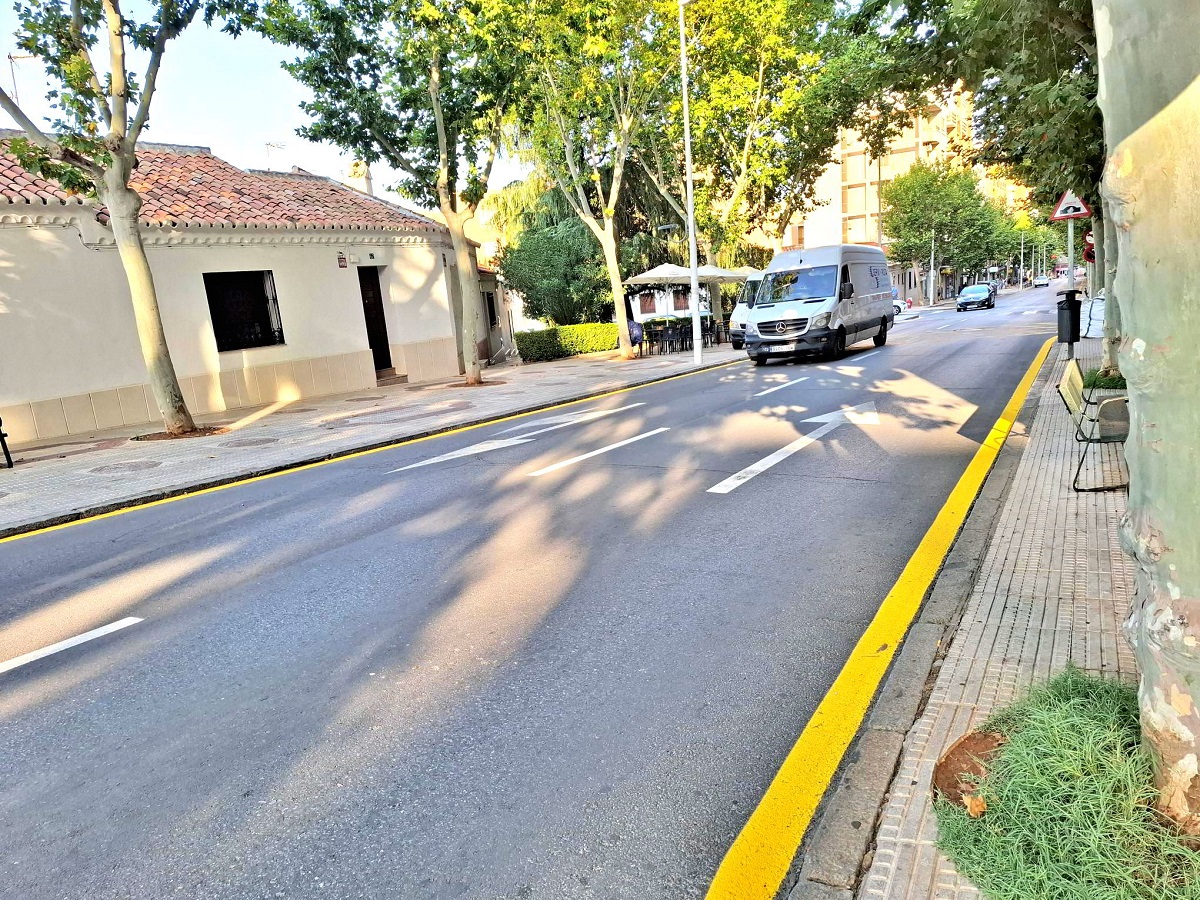 La avenida Primero de Mayo ha sido pintada con línea continua de color amarillo junto al borde de la calzada de prohibición de parada y estacionamiento a lo largo del vial.