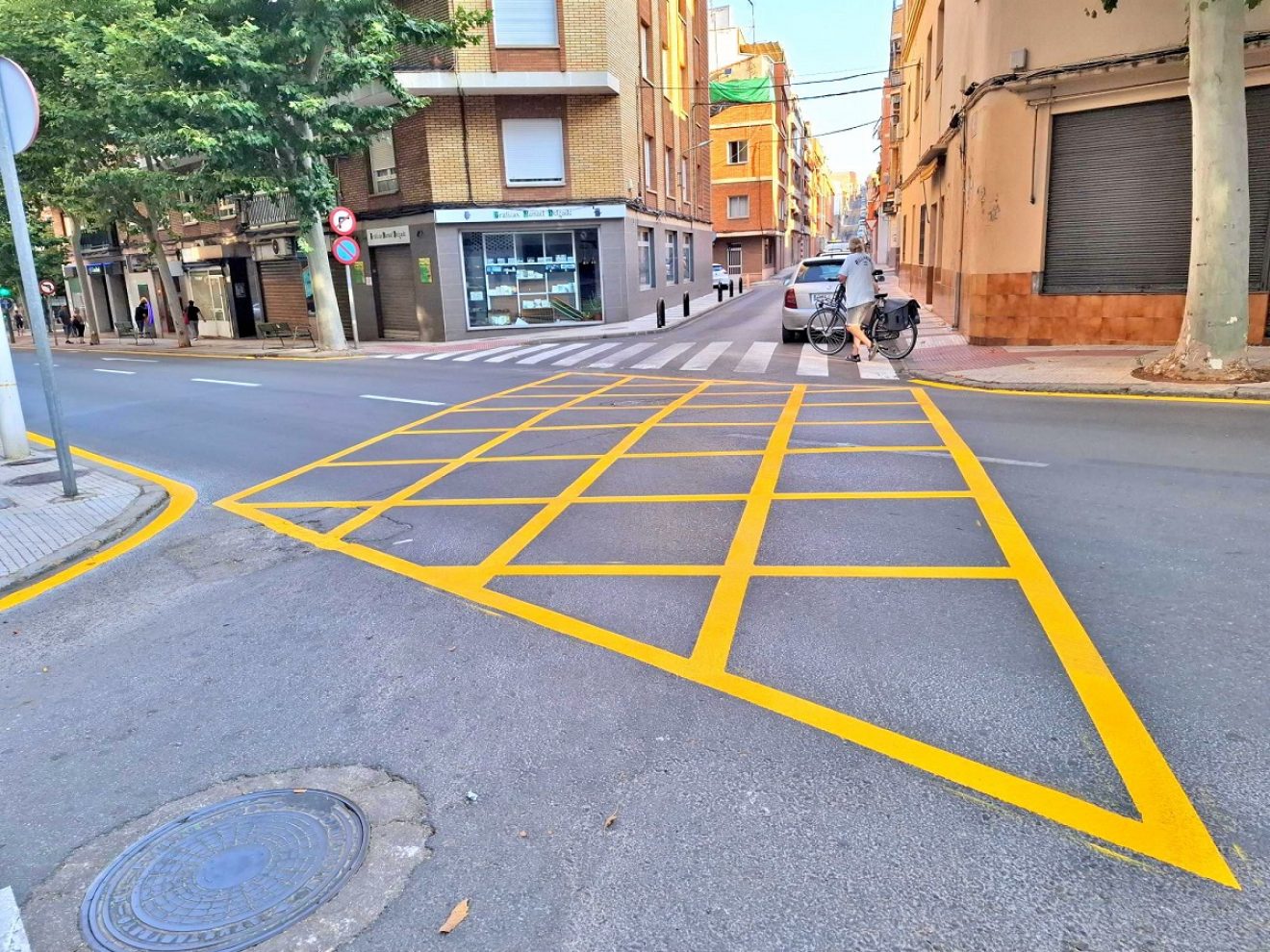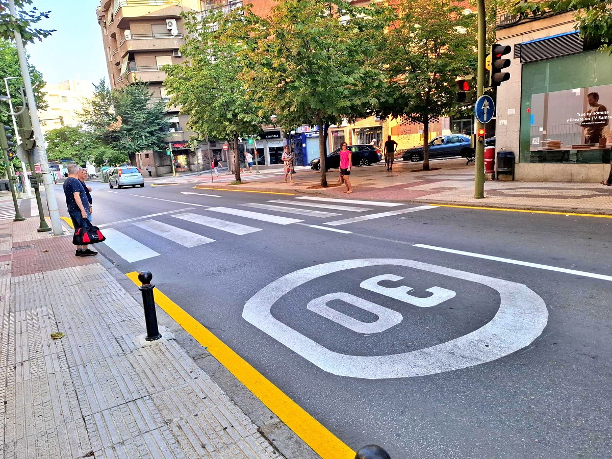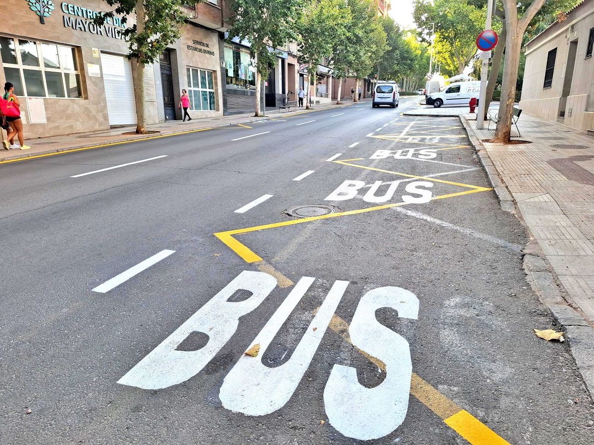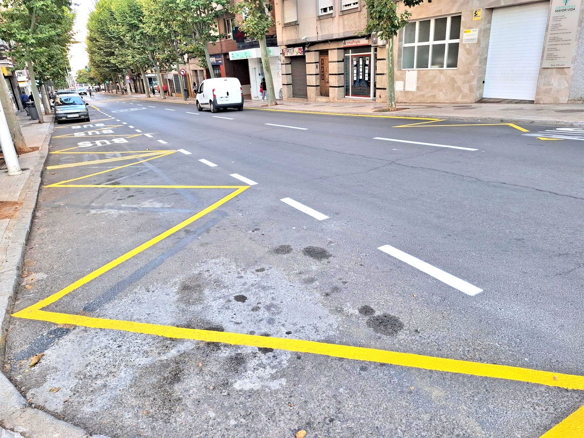 También se han pintado las paradas de bus, zona reservada a vehículos de conductores con discapacidad y las marcas amarillas en zig-zag de espacio de estacionamiento prohibido a los vehículos por estar reservado a carga o descarga.