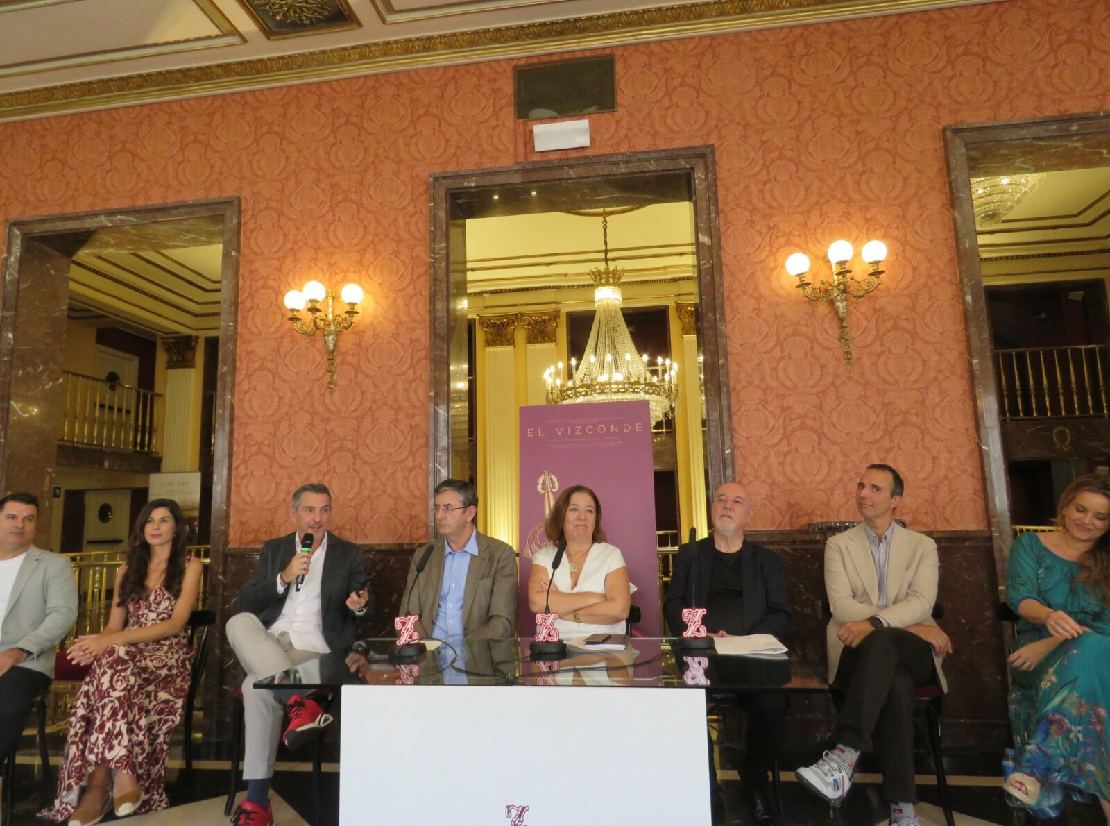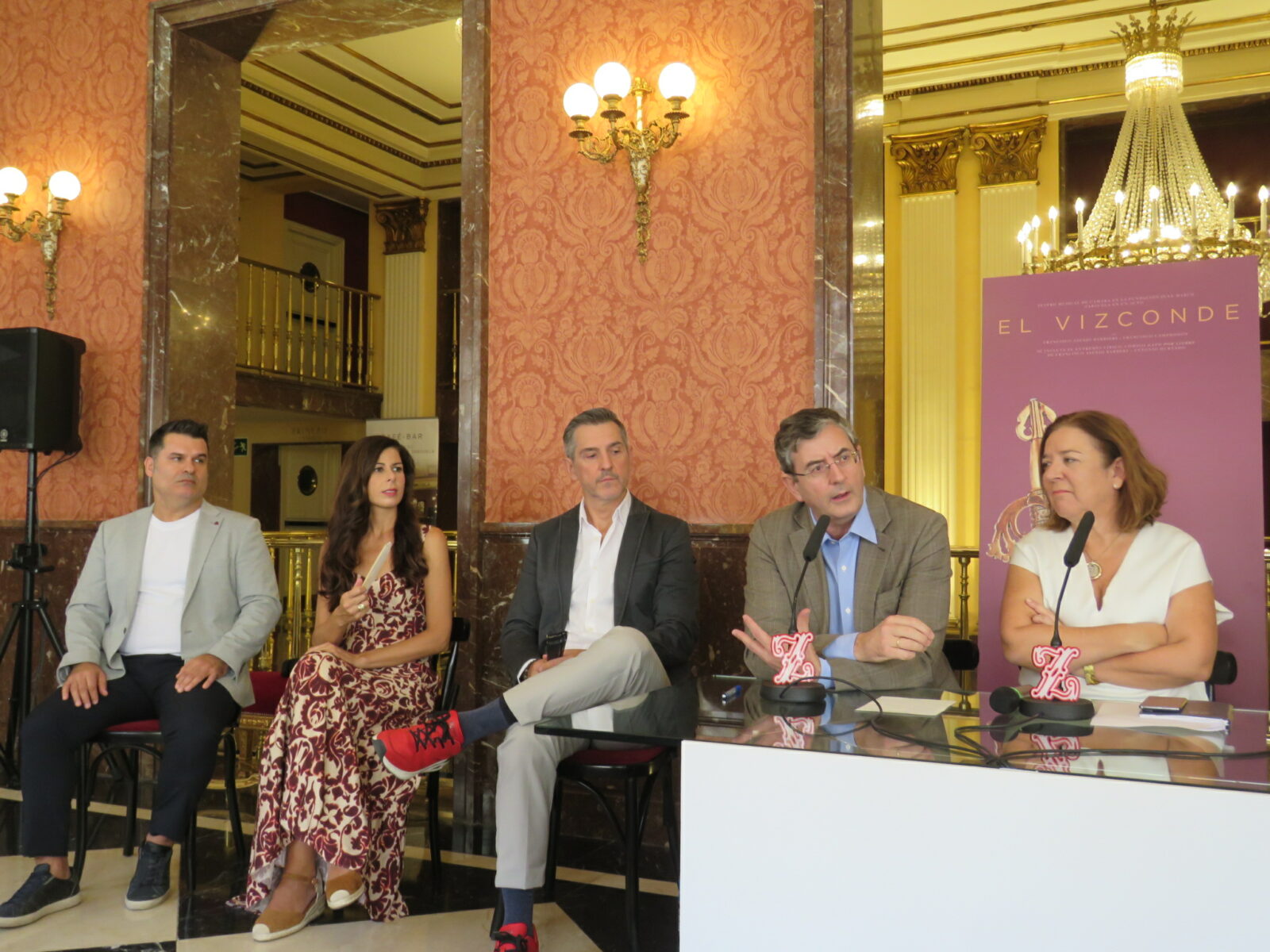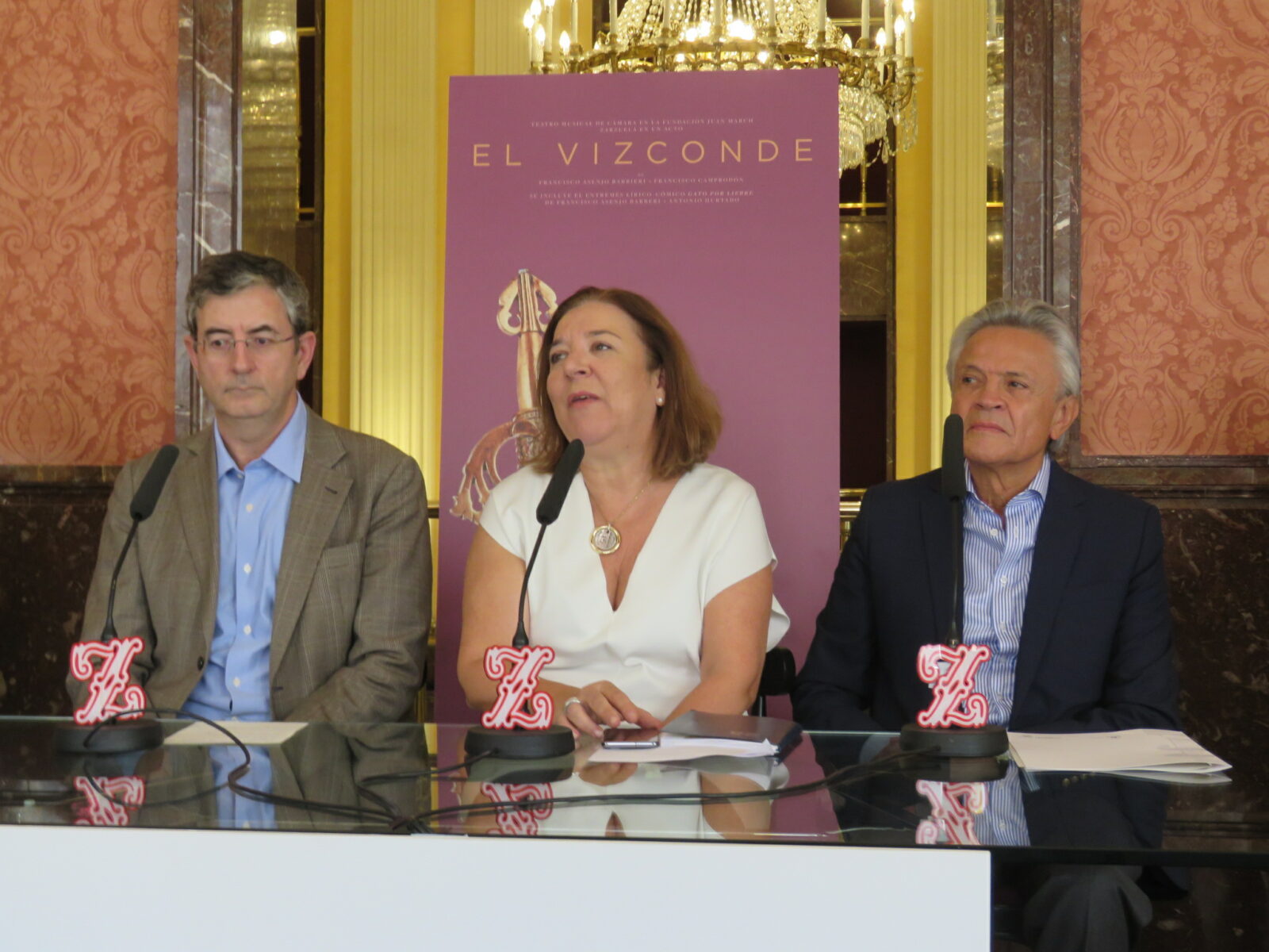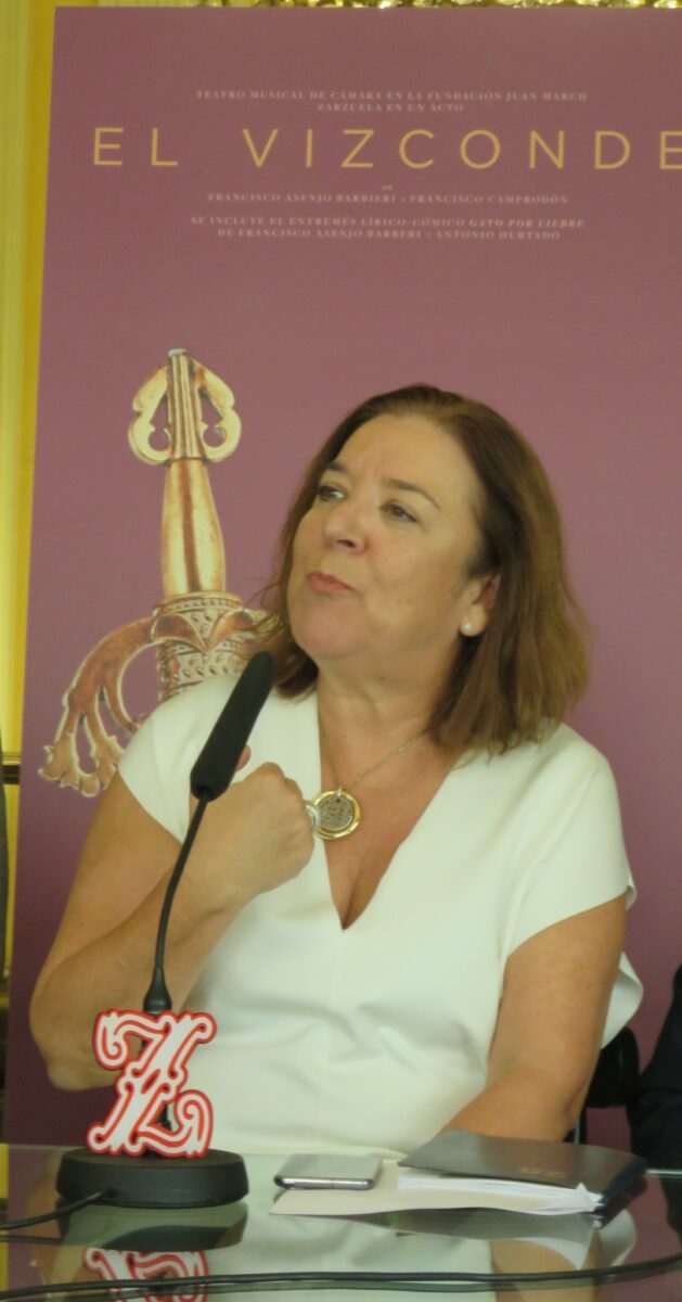 Se ha celebrado en el ambigú del Teatro de la Zarzuela la rueda de prensa de presentación de la zarzuela cómica ‘El vizconde’, y el entremés lírico-cómico ‘Gato por liebre’, en la que han intervenido la directora del Teatro, Isamay Benavente, que la presentó y coordinó, el director del departamento de Música de la Fundación Juan March, Miguel Ángel Marín y el director del Teatro Mayor de Bogotá, Ramiro Osorio, con la participación de Miquel Ortega, director musical, Alfonso Romero, director de escena y los intérpretes de la producción: Irene Palazón (soprano), Blanca Valido (contralto), Juan Antonio Sanabria (tenor) y César San Martín (barítono).