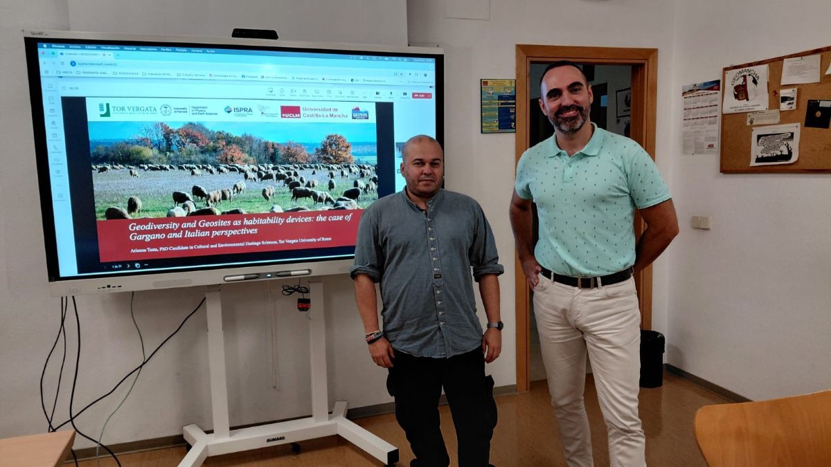 El encuentro contó con la participación de Arianna Testa, investigadora de la Università degli Studi di Roma Tor Vergata, quien impartió la conferencia Geodiversidad y geositios: cómo hacen habitables los paisajes, el caso del Gargano y otras perspectivas italianas y de William Hernández, doctorando de la Universidad de La Laguna, que presentó la ponencia Vulcanotourismo en la Isla de La Palma. El joven investigador se encuentra realizando estancia de investigación con GEOVOL y la UCLM.