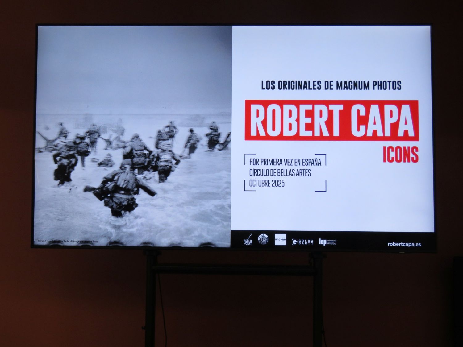 En el Circulo de Bellas Artes de Madrid se ha presentado la exposición Robert Capa. ICONS en un acto que ha contado con la participación de Valerio Rocco, director del Círculo de Bellas Artes; Rafael Giménez, socio director de Sold Out; Michel Lefebvre, comisario de la exposición; y Andrea Holzherr, directora global de exposiciones de Magnum Photos, junto a la traductora e interprete María de Ancos Rivera, que, como siempre, realizó un impecable trabajo.