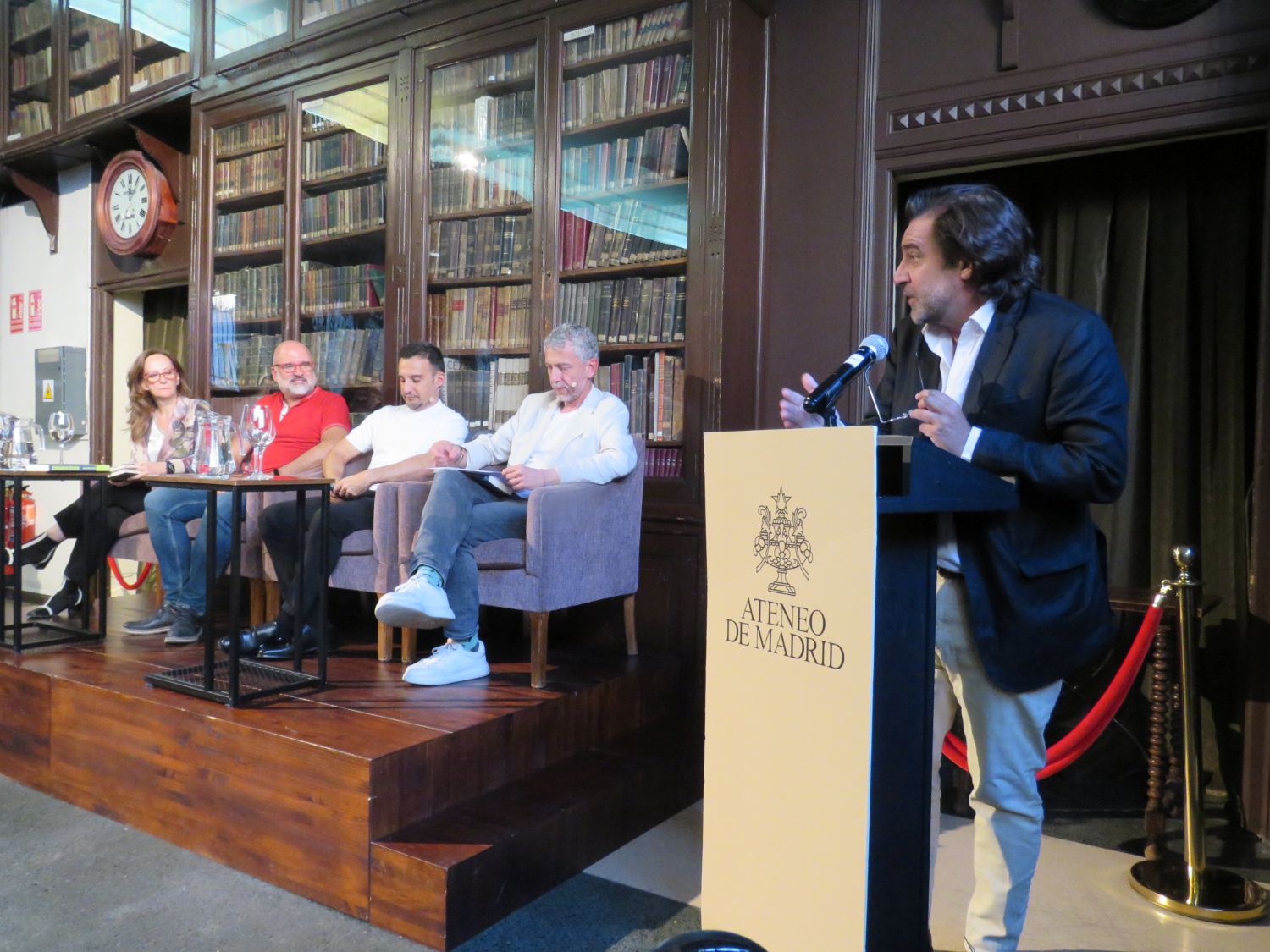 En el acto han participado, junto al autor, por orden de intervención, Luis Arroyo, presidente del Ateneo; Karmele Aramburu, actriz, presentadora y cantante, que leyó varios fragmentos de la obra presentada; David Trías, de Plaza y Janés y el director de cine, Alejandro Amenábar.