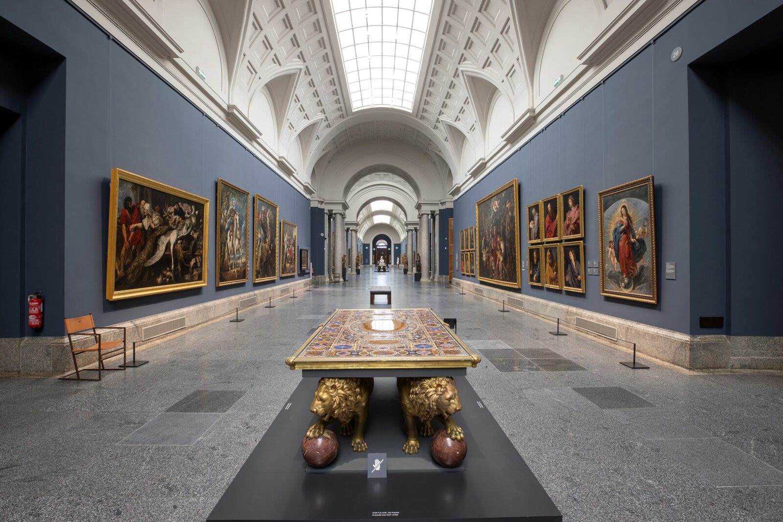 Esta renovación se suma a la larga tradición de intervenciones en la Galería Central: desde la reforma de Pedro Muguruza en los años 20, la climatización en los 80 o la recuperación de ventanales en 2011, hasta el montaje de la exposición “Reencuentro” en 2020. Ahora, con el nuevo azul, el Prado abre una etapa cromática en su espacio más representativo.