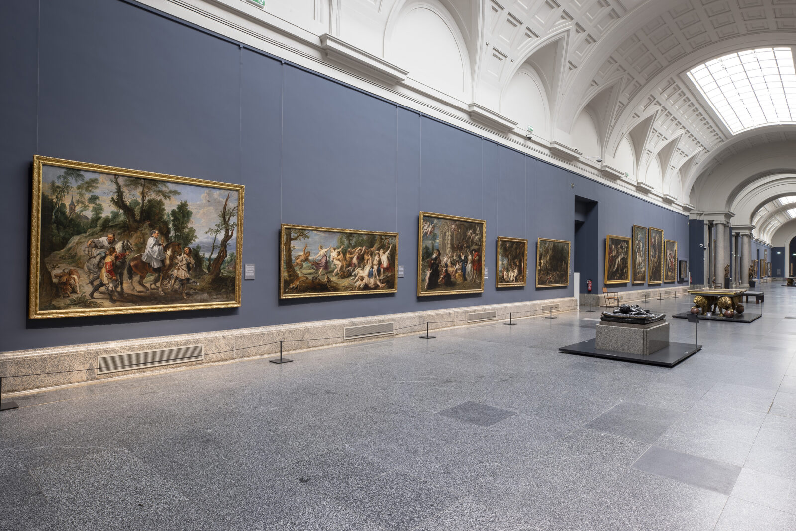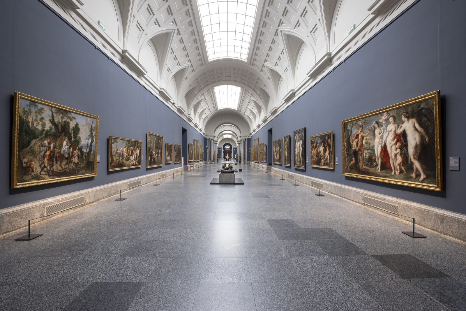 El Museo Nacional del Prado reabre su Galería Central tras la renovación cromática acometida durante las últimas semanas. Los visitantes pueden ya acceder a este espacio que alberga los grandes lienzos de Tiziano, Tintoretto, Veronés y Rubens con un nuevo fondo azul concebido para destacar la arquitectura histórica de Villanueva y el brillante colorido de estas pinturas.