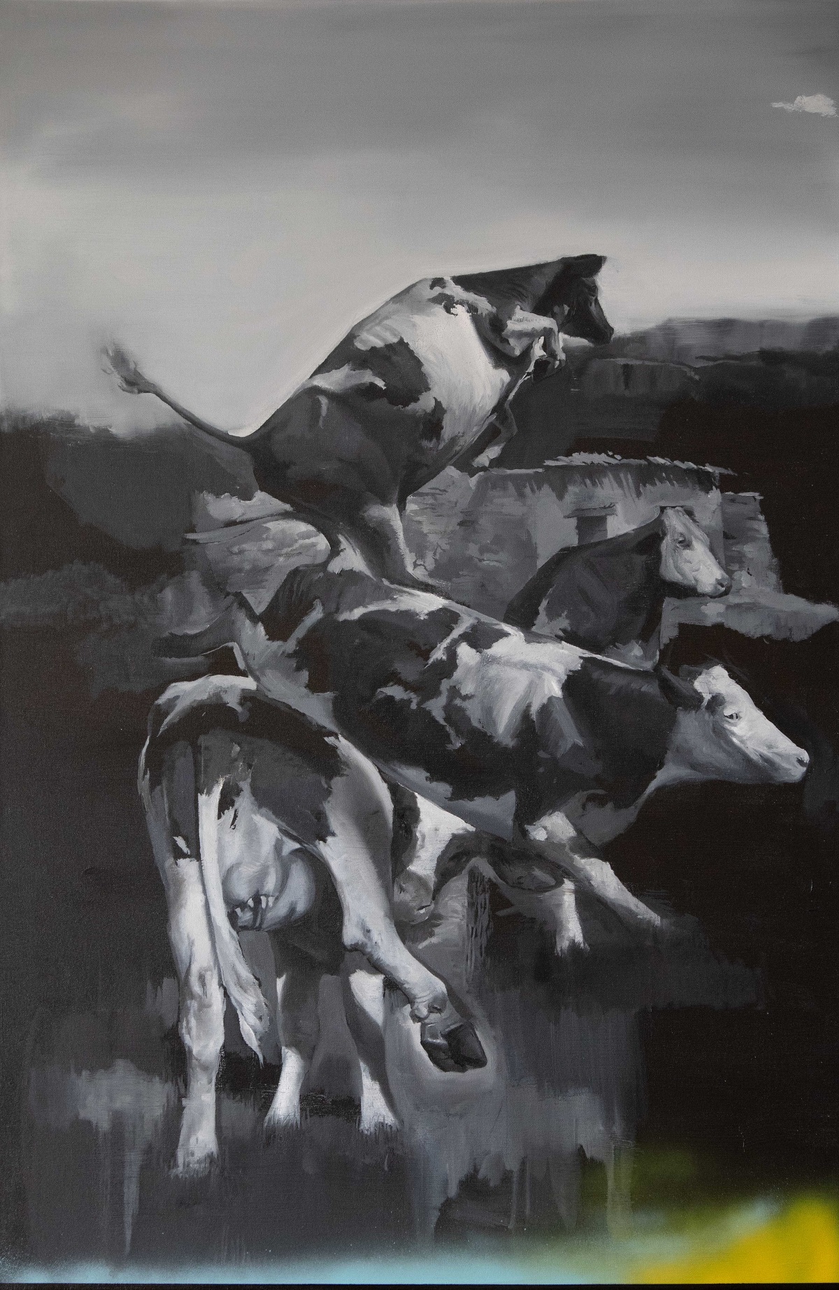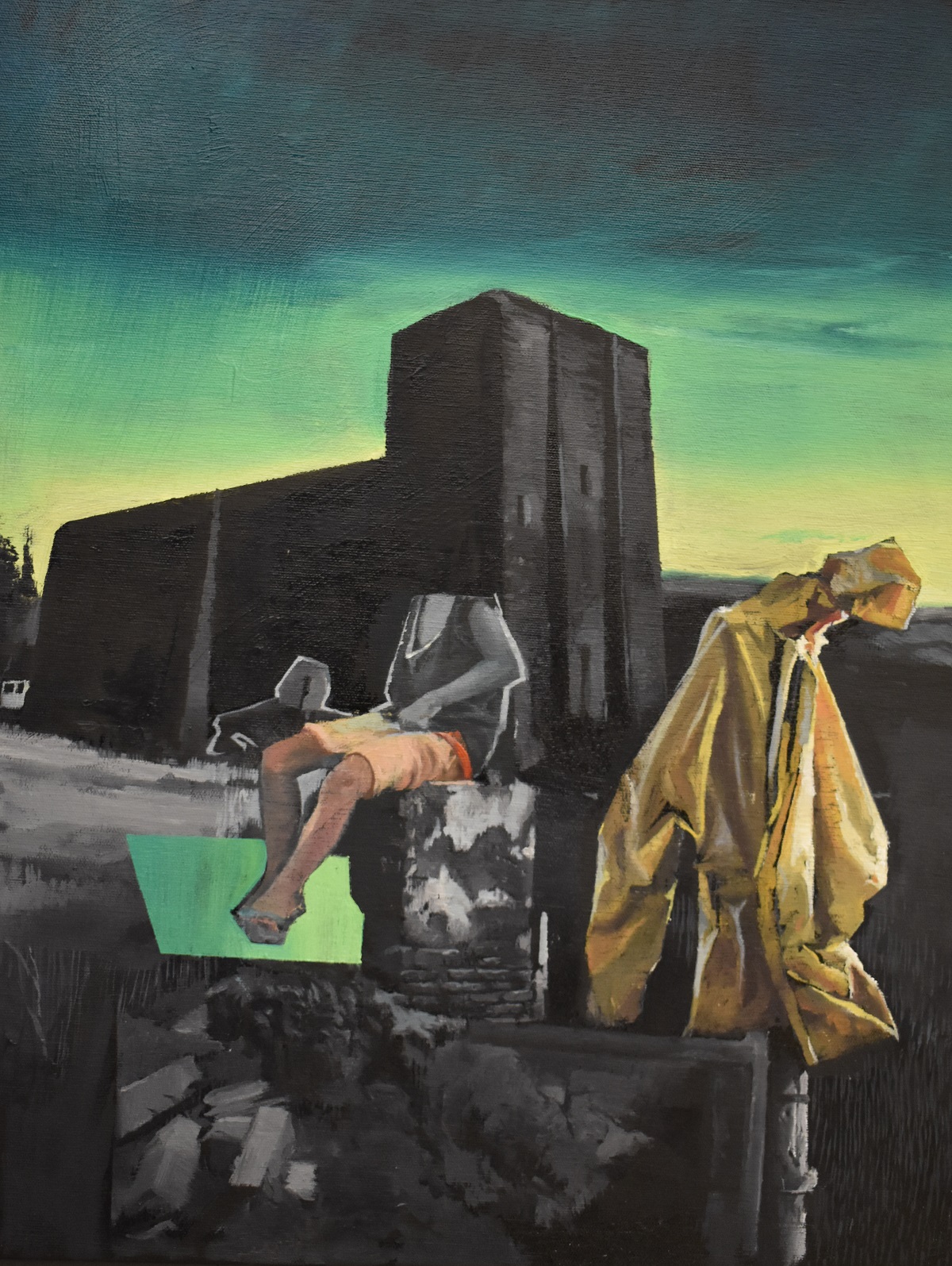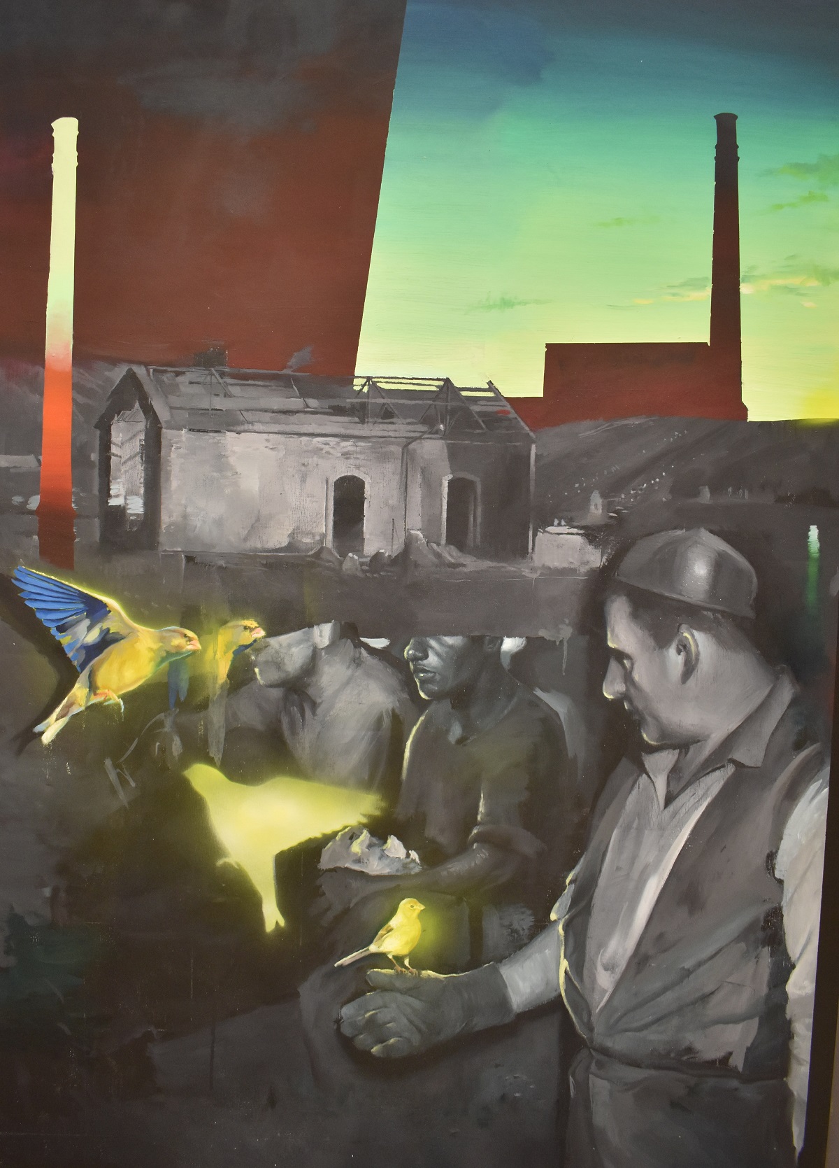 Composiciones donde ha procurado jugar con la imagen. A través del collage digital se han creado escenas en las que personajes interactúan en espacios ocupados por las antiguas edificaciones de la ciudad. Minas, fábricas, torres, chimeneas… todo lugar inutilizado ha servido como inspiración para crear estas atmósferas de ensoñación.