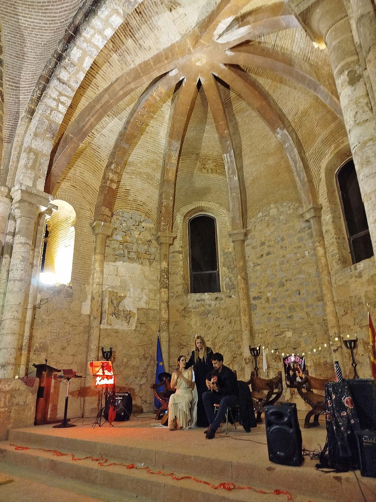 En la parte norte del Castillo de Calatrava La Nueva, se conserva su Iglesia del siglo XIII, donde tuvo lugar la actividad cultural: “Kairos”, en la voz de Rocío Solís, el baile de Gema Yagüe y la magia de la guitarra de Pablo Vega. Un espectáculo que rompe barreras y une generaciones. Con la magia del cante, el sonido vibrante de la guitarra y la expresión intensa del baile, llevando al escenario una fusión innovadora de flamenco con influencias de diversos géneros. En este viaje, se sumergen en la juerga y la rumba, invitando al público a sentir el arte con intensidad, celebrando la vida y la libertad a través de la música y el baile. Una experiencia única donde el duende flamenco se reinventa, sin perder su esencia, pero abriendo paso a nuevas sonoridades que encienden el alma y que en la iglesia sonaba de manera aún más especial.