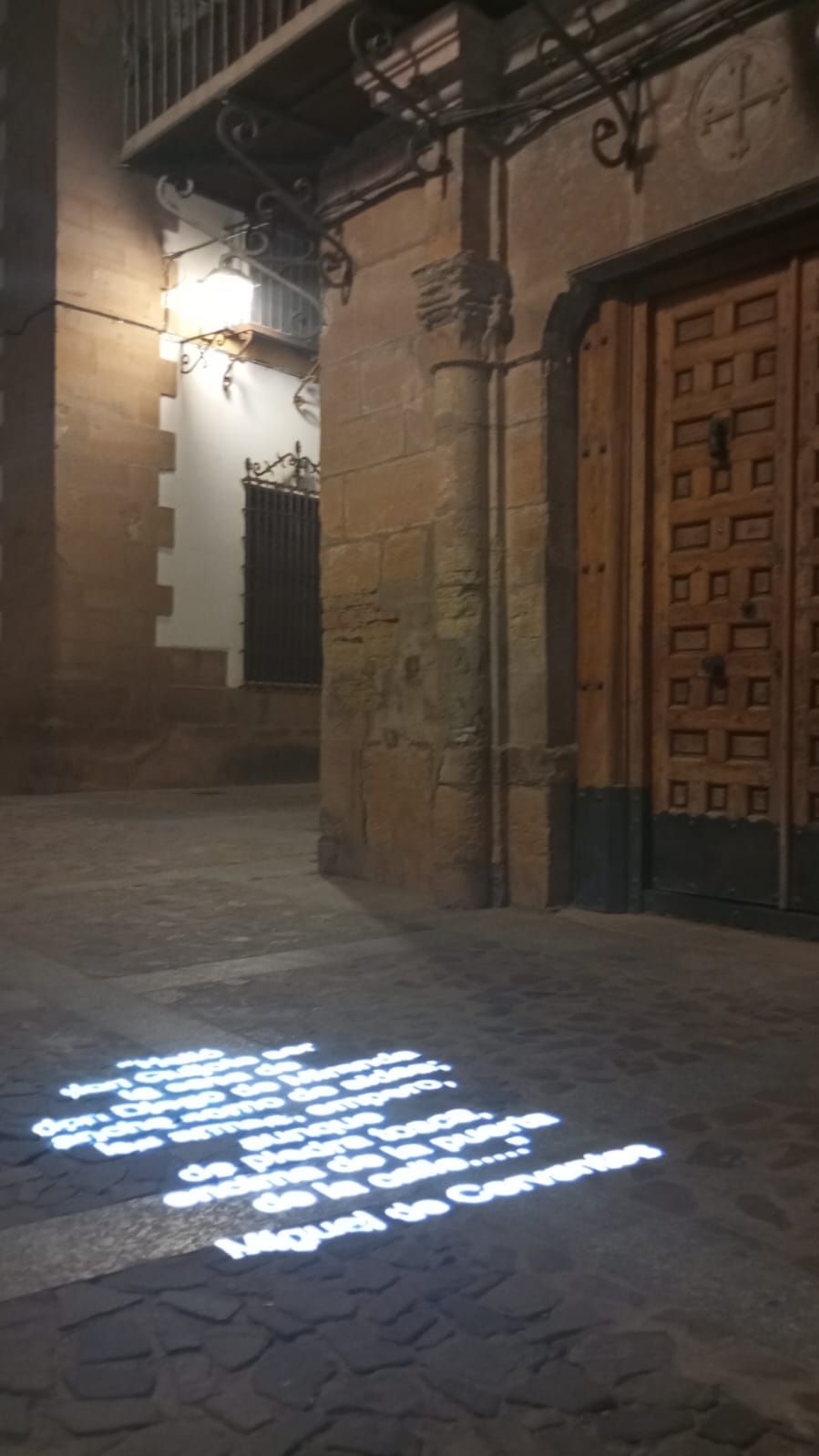 Estos gobos proyectarán sobre fachadas y suelos textos de Cervantes, Quevedo, Lope de Vega, Azorín y Lorca, todos ellos relacionados con la huella que Villanueva de los Infantes dejó en su obra o en su paso por la ciudad.