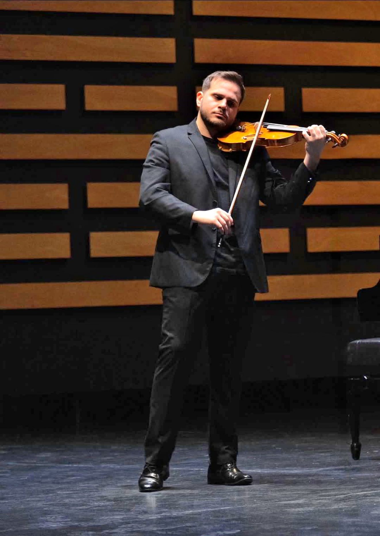 La primera parte del concierto estuvo dedicada al Concierto n.º 1 en sol menor, op. 26 de Max Bruch, interpretado por Adrián Fernández con una maestría que combinó sensibilidad y técnica impecable. Su sonido cálido y su capacidad para dialogar con la orquesta despertaron el reconocimiento del público, que aplaudió prolongadamente su actuación. Fernández supo extraer del violín todos los matices románticos de la obra, desde el lirismo melódico hasta los pasajes de mayor virtuosismo.