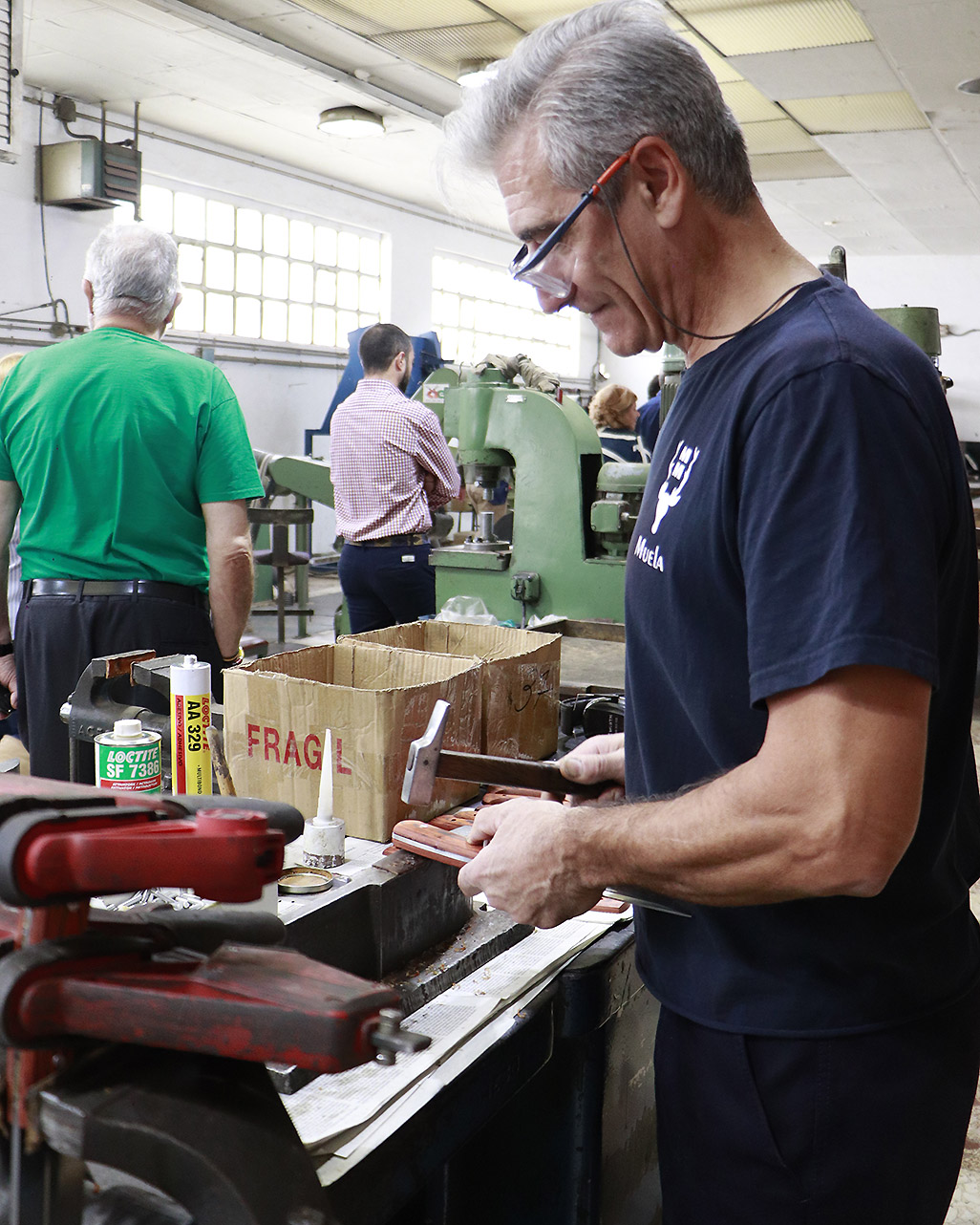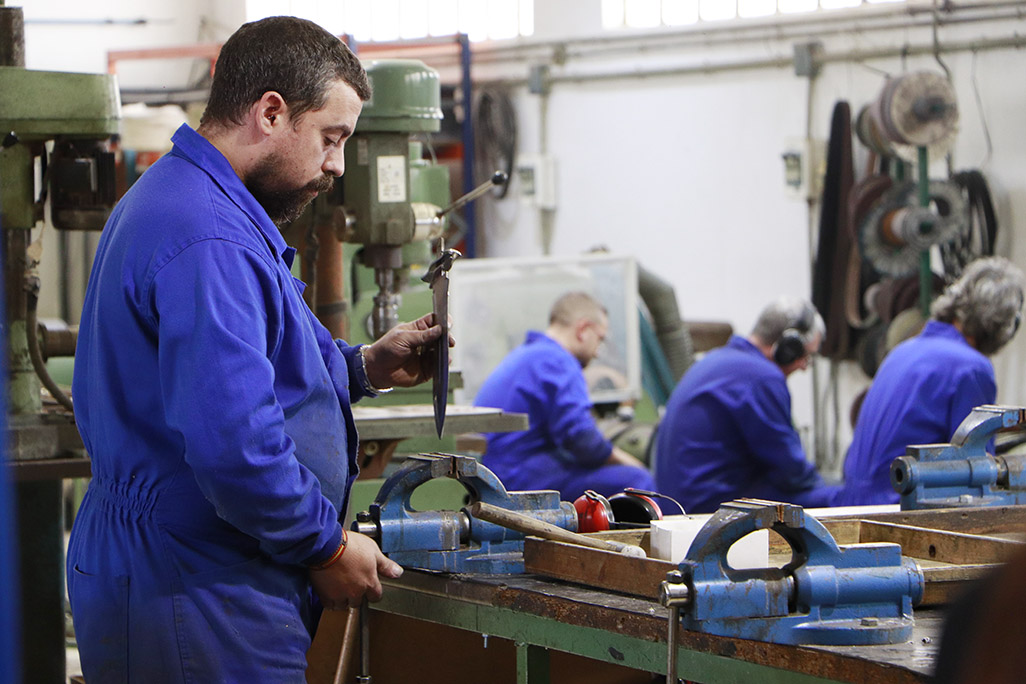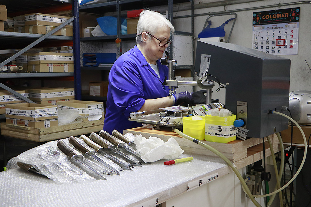 En la visita a la factoría, Ruiz Valle puso el foco en el minucioso proceso de producción, donde la tecnología de vanguardia convive con un insustituible componente artesanal, especialmente en el tratamiento de las empuñaduras de asta de ciervo, destacando el exigente control que convierte cada pieza en un objeto único.