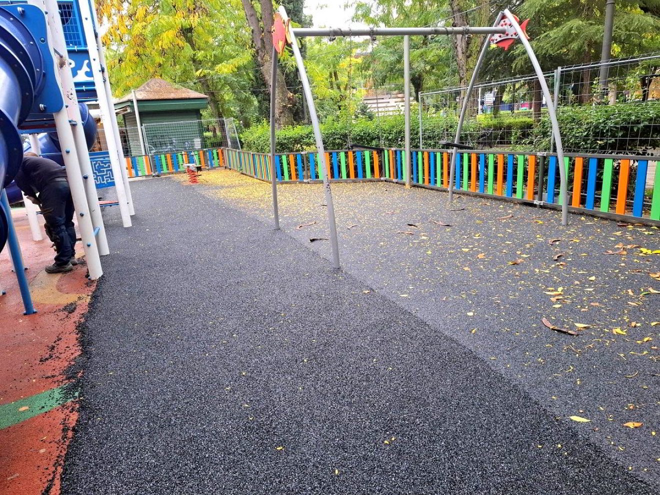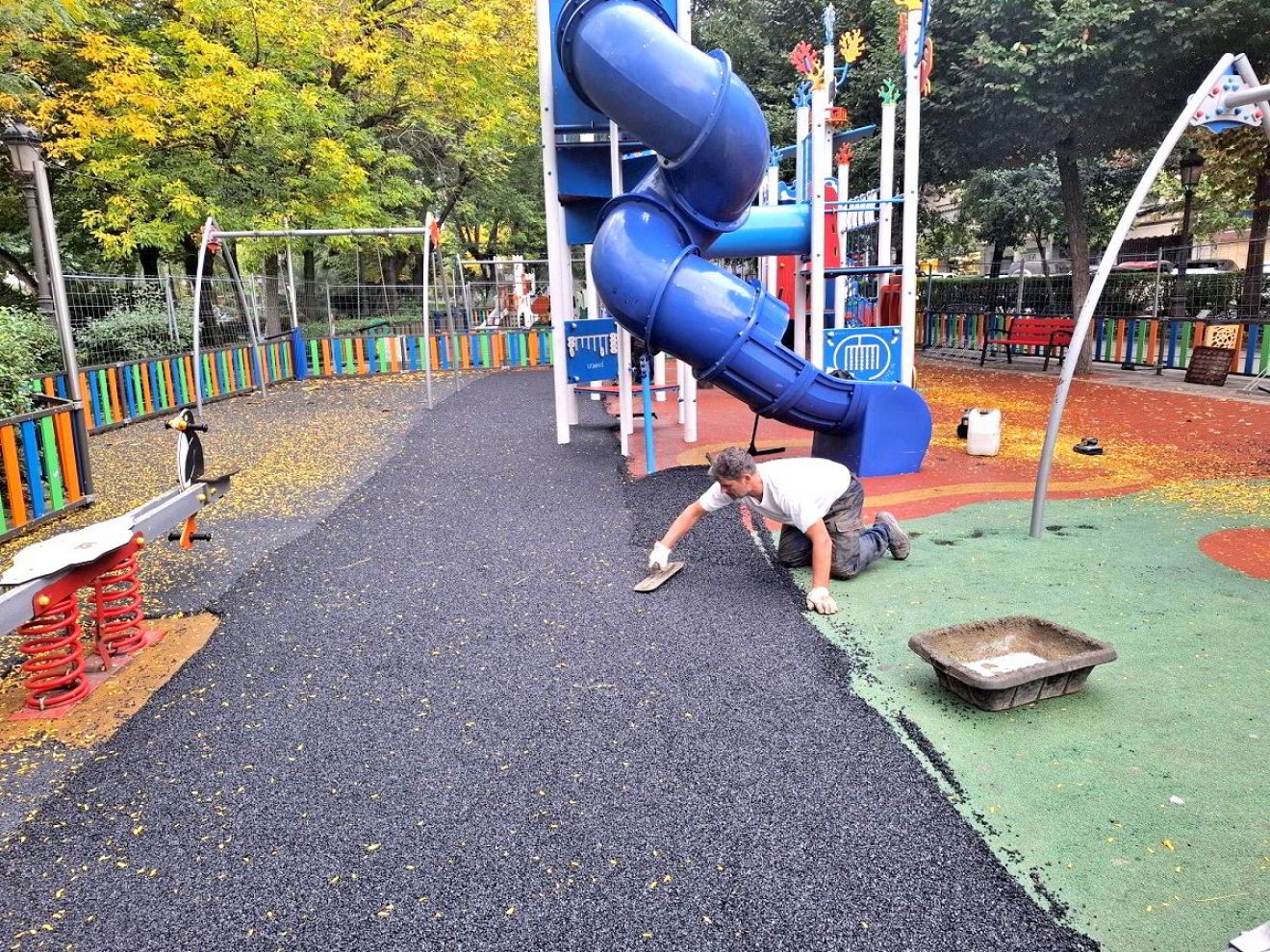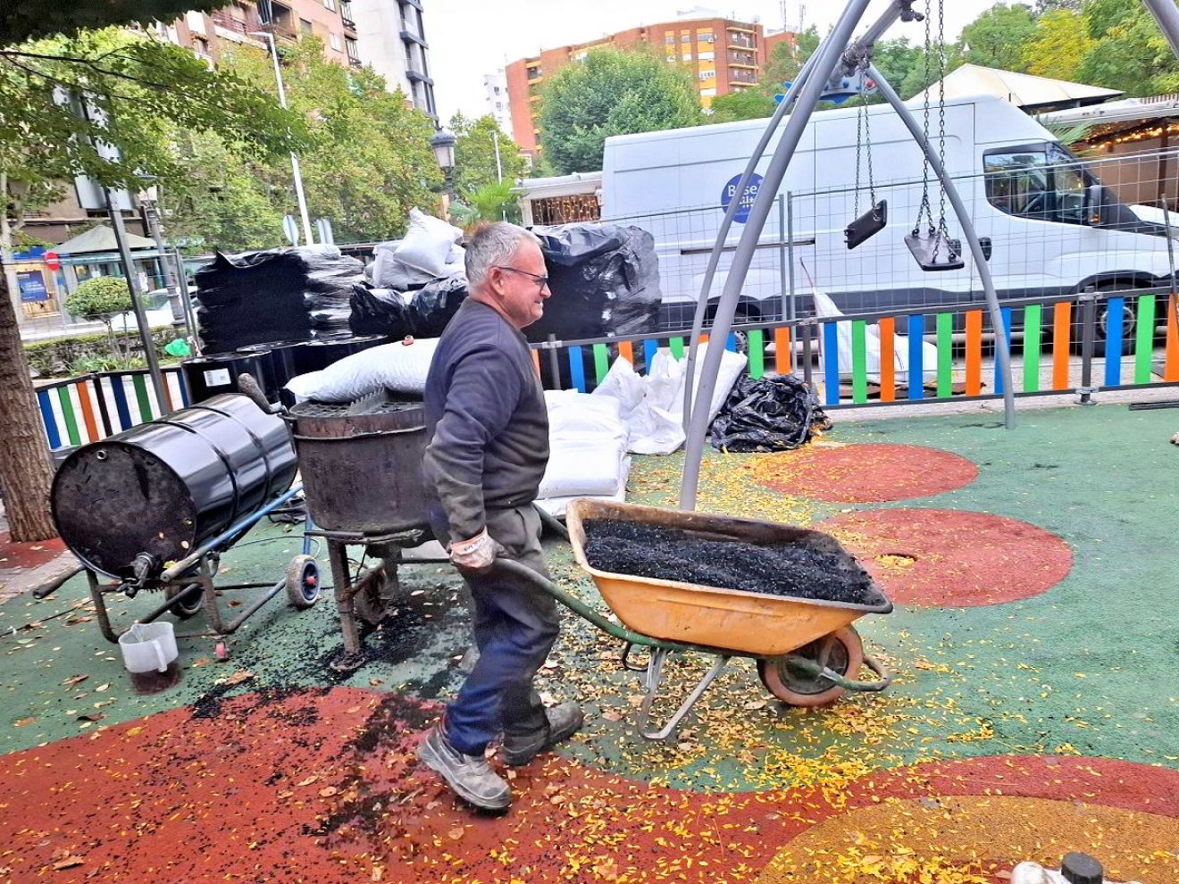La empresa BaseFilt ha iniciado el extendido del nuevo caucho sobre el ya existente y procederá a la retirada de las zonas más deterioradas para su sustitución por nuevo solado. Una vez listado todo el suelo se realizará el coloreado de los parques infantiles del Paseo para que estén a punto para el uso y disfrute de todos los niños de Puertollano.