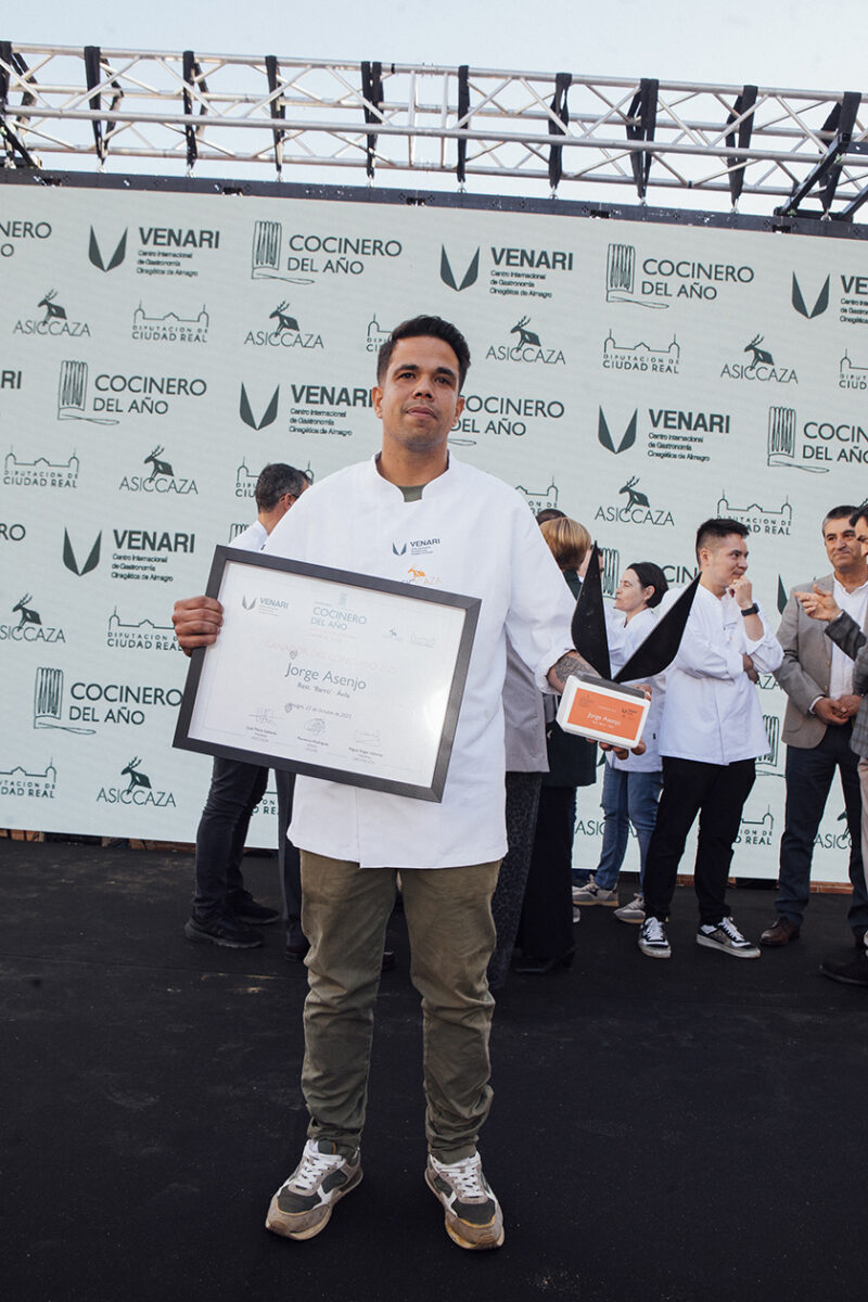 El chef Jorge Asenjo, jefe de cocina del restaurante BARRO, en Ávila, con una estrella Michelin y una estrella Verde, ha ganado el Concurso Cocinero del Año Especial Carne de Caza 2025, que se ha celebrado este 22 de octubre en el Palacio de Valdeparaíso de Almagro y ha reunido a más de 250 asistentes con el fin de poner en valor la cocina de caza.