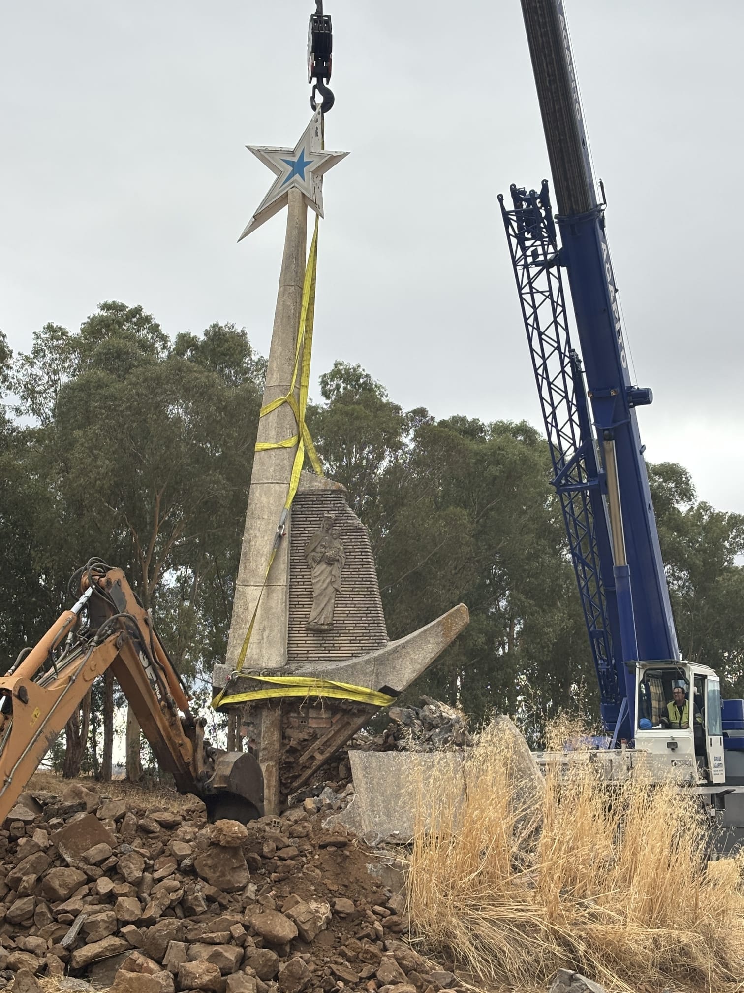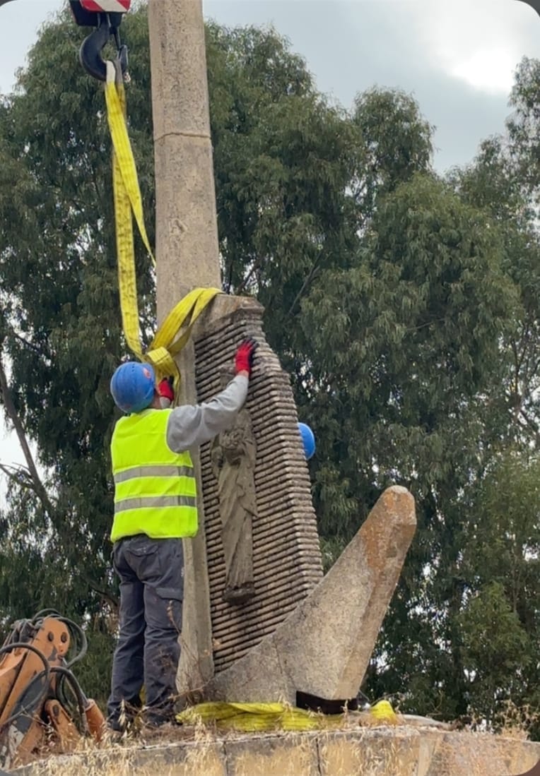 Operarios de las empresas Hijos de Bruno y Grúas Montaga han procedido recientemente al desmontaje del recordado monumento de María Auxiliadora que estaba ubicado en la finca «El Bonal» de Puertollano, en presencia de Miguel Ángel Fernández, salesiano encargado de patrimonio, y Antonio Gómez, presidente de Adma. La operación, realizada hace unos días, culminó sin incidencias, y las piezas han sido trasladadas a una nave cedida por GyB Puertomotor, donde Miguel Ángel comenzará con las tareas de restauración. La intención de la comunidad salesiana de Puertollano es acordar un espacio público con el consistorio para que este mítico conjunto monumental pueda ser disfrutado por todos los ciudadanos.