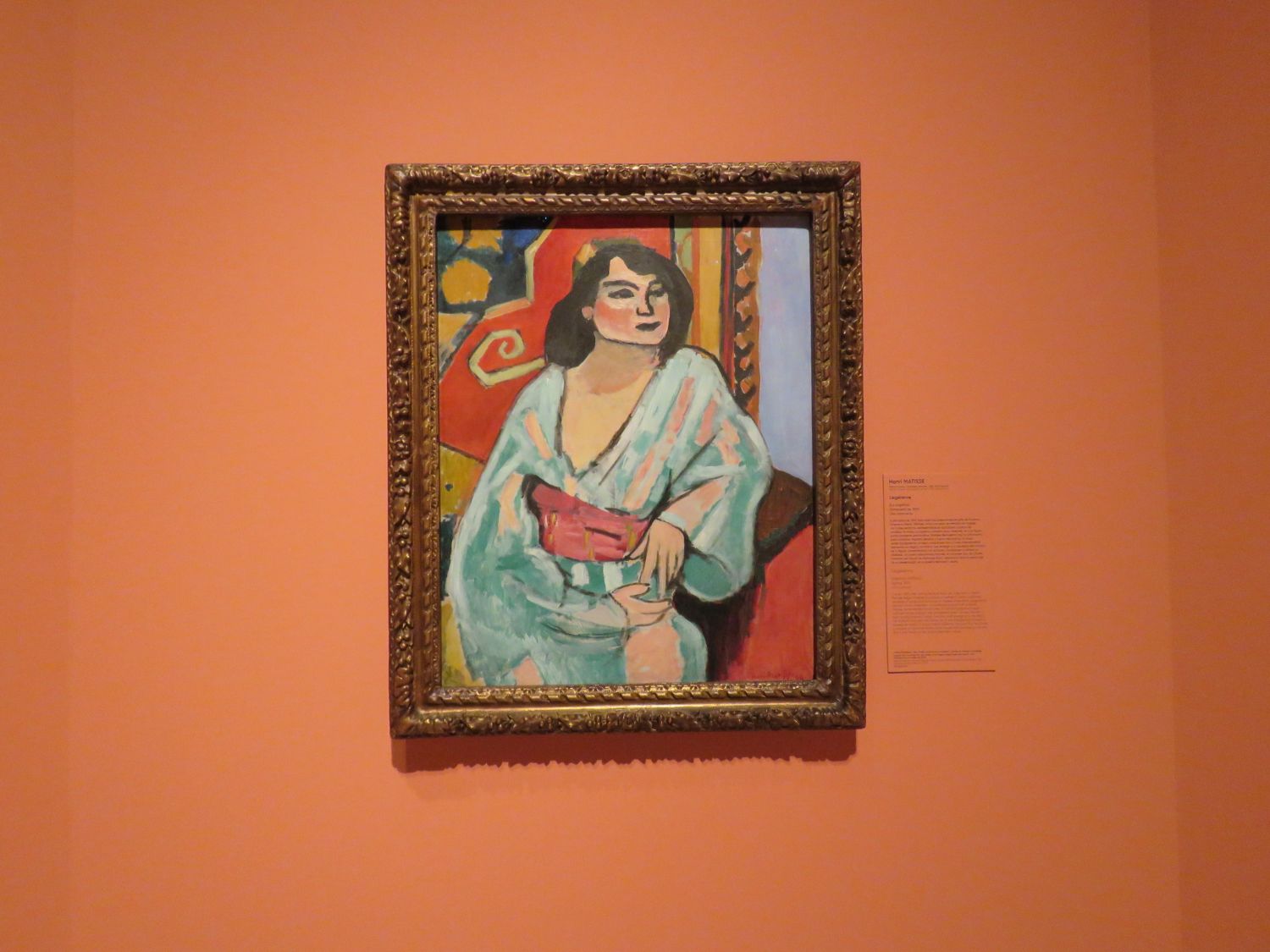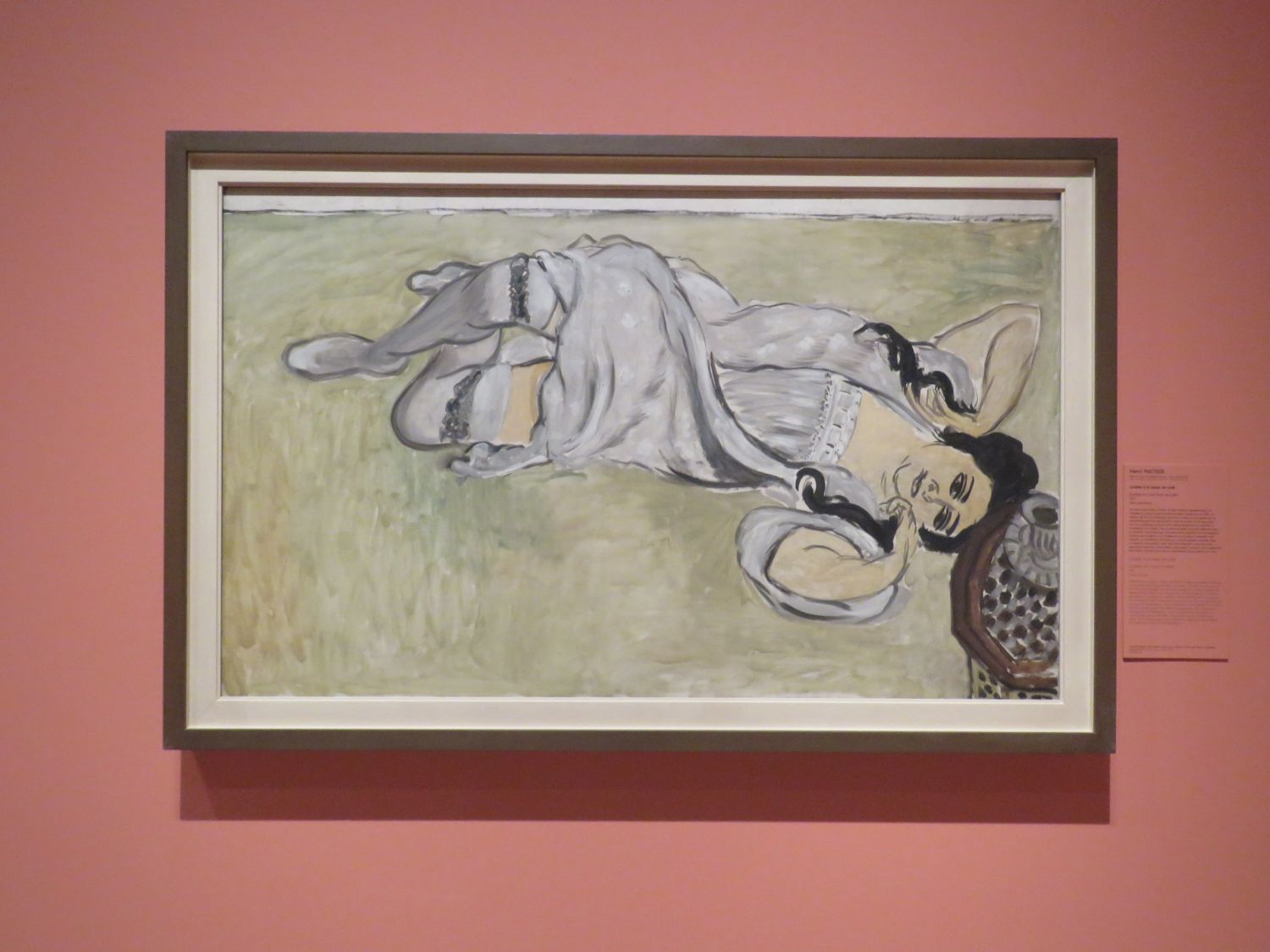 A finales de 1917, Matisse se traslada a Niza, en la Costa Azul. Deja de lado la dimensión experimental y se concentra en escenas de interior con modelos femeninos que le permiten explorar la relación entre figura y espacio. Figuras y accesorios remiten a sus viajes a España y al Magreb.