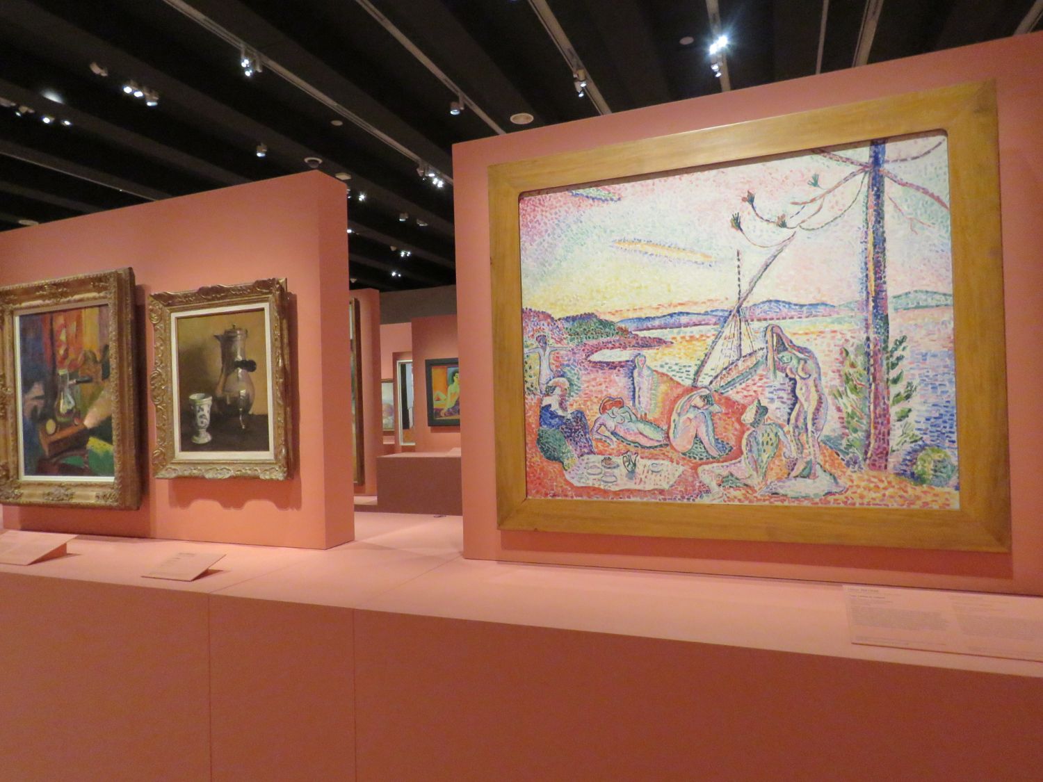 Un autorretrato, un paisaje de París y dos bodegones reposados y sombríos, realizados entre 1900 y 1902, son el testimonio de los inicios de la trayectoria de Matisse bajo la influencia de su maestro, Gustave Moreau. Lujo, calma y voluptuosidad, de 1904, representa un cambio de rumbo, con un tratamiento plástico basado en la fragmentación de la luz y la correspondencia entre el tema —un almuerzo junto al mar— y la belleza de la forma.