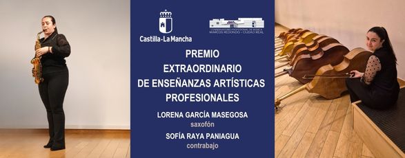 Lorena García Masegosa (saxofón) y Sofía Raya Paniagua (contrabajo), que recientemente finalizaron sus estudios musicales en el Conservatorio Profesional de Música «Marcos Redondo», han obtenido el Premio Extraordinario de Enseñanzas Artísticas Profesionales en Castilla-La Mancha correspondiente al curso académico 2024-2025, según la Resolución de 21/10/2025 publicada por la Consejería de Educación, Cultura y Deportes.