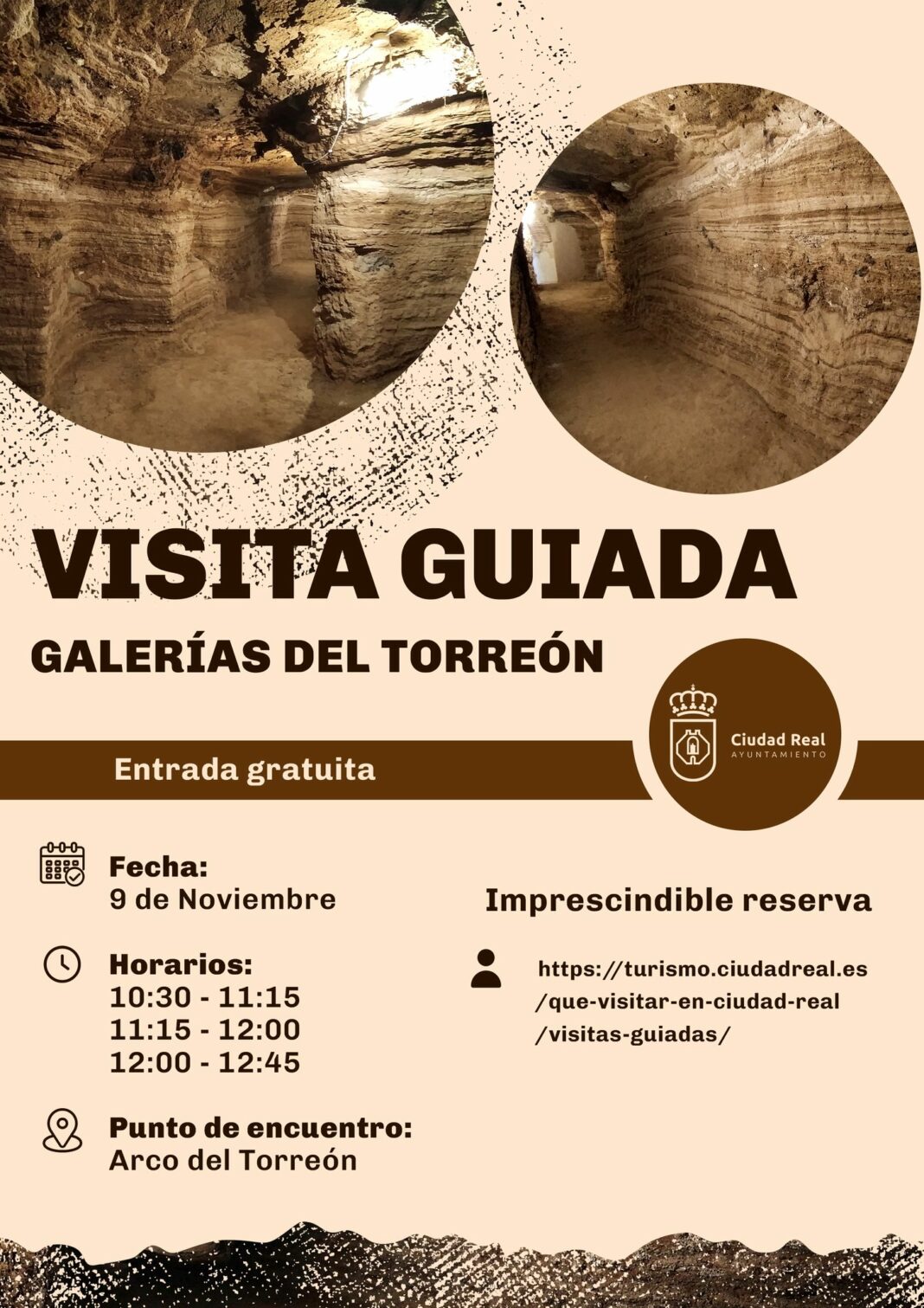 El punto de encuentro será el Arco del Torreón, y aunque la entrada es gratuita, es imprescindible realizar reserva previa a través del portal de turismo municipal: https://turismo.ciudadreal.es/que-visitar-en-ciudad-real/visitas-guiadas/