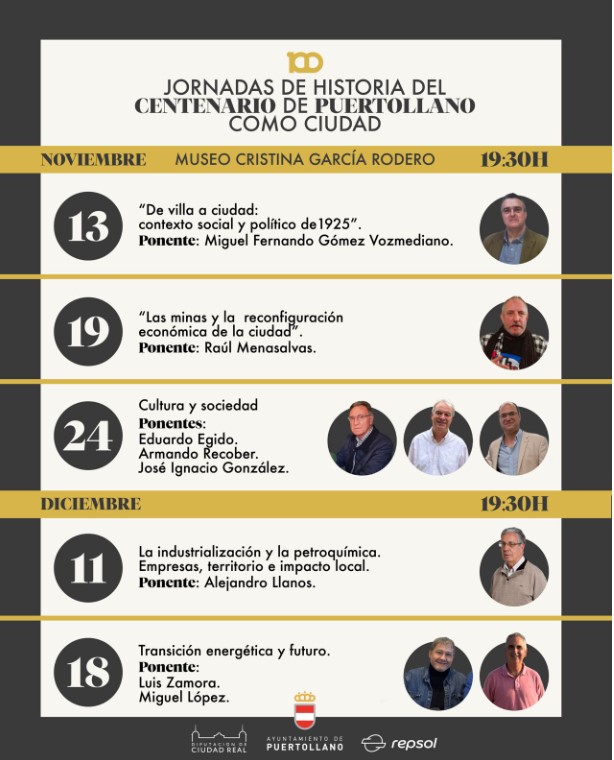 La sesión ofrecerá una visión plural de los procesos históricos, culturales y educativos que han configurado la identidad contemporánea de Puertollano, desde los inicios de su transformación industrial hasta su consolidación como ciudad moderna.