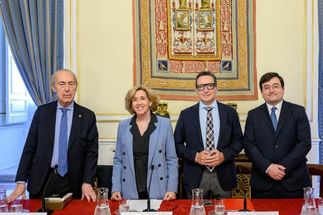 En el acto han intervenido la presidenta de Patrimonio Nacional, Ana de la Cueva; el rector de la Universidad de Salamanca, Juan Manuel Corchado, y Javier Burguillo, doctor de Filología Hispánica, profesor del Departamento de Literatura Española e Hispanoamericana de la Universidad de Salamanca, y antólogo de Verano eterno, que han acompañado al galardonado, Luis Alberto de Cuenca.