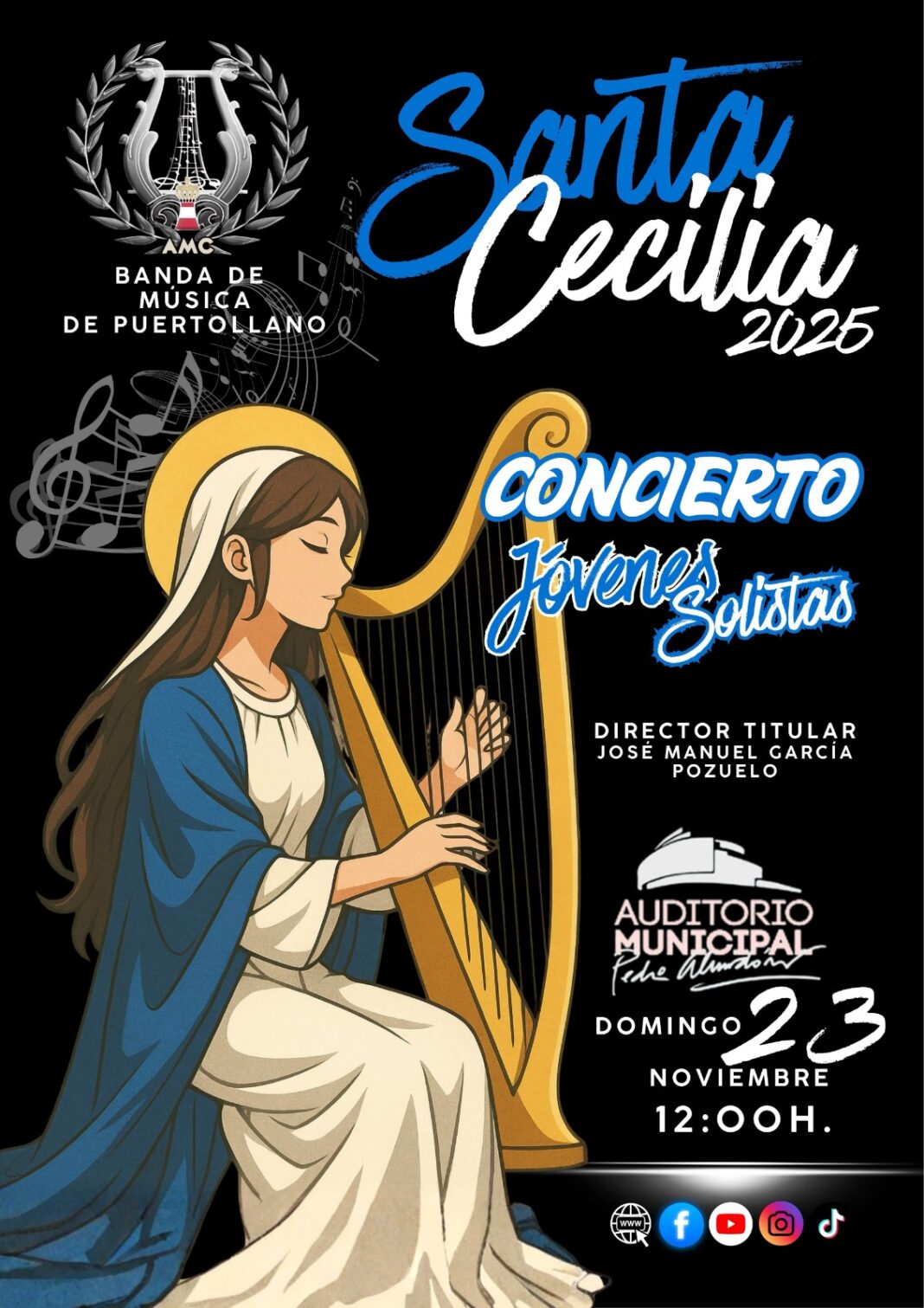 La AMC Banda de Música de Puertollano ofrecerá el próximo domingo 23 de noviembre, a las 12:00 horas, en el Auditorio Pedro Almodóvar, su tradicional Concierto de Santa Cecilia, bajo la dirección de José Manuel García Pozuelo. Este año, el programa lleva por título “Jóvenes Solistas”, un homenaje al talento emergente de la agrupación y a las nuevas generaciones de intérpretes formados en el Conservatorio Profesional de Música “Pablo Sorozábal” de Puertollano.