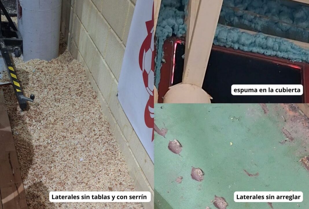 Según ha indicado, el resultado ha confirmado lo evidente desde el principio, ya que las goteras persisten, mientras la cubierta y las ventanas siguen sin repararse. “Han tenido que poner espuma en el techo y serrín en el suelo para intentar evitar que la pista se moje, además de que faltan tablas en los laterales de la pista”, ha dicho Barahona. “Lo que significa que las próximas lluvias fuertes dañarán de nuevo las instalaciones”.