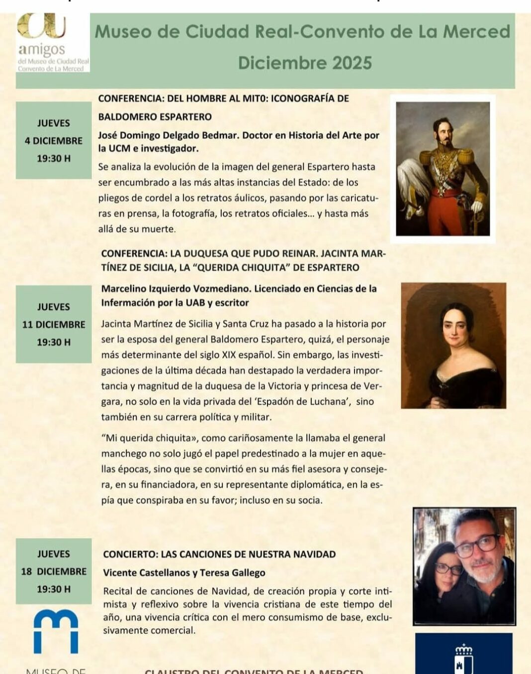 Anselmo Alañón Alcaide.- Marcelino Izquierdo Vozmediano, Licenciado en Ciencias de la Información por la UAB, y escritor, realizará una ponencia el próximo 11 de diciembre a las 19:30 horas, en el Claustro del Convento de la Merced. Jacinta Martínez de Sicilia y Santa Cruz han pasado a la historia por ser la esposa del General Baldomero Espartero, quizá el personaje más determinante del siglo XIX español.