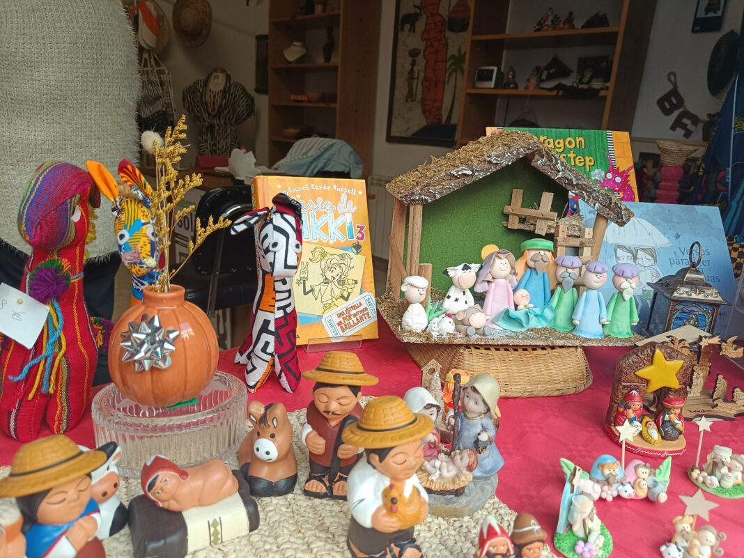 El mercadillo cuenta con productos de Comercio Justo (chocolates, panela, café), productos de proximidad (miel, aceite), artesanía de África y América Latina y libros de segunda mano.