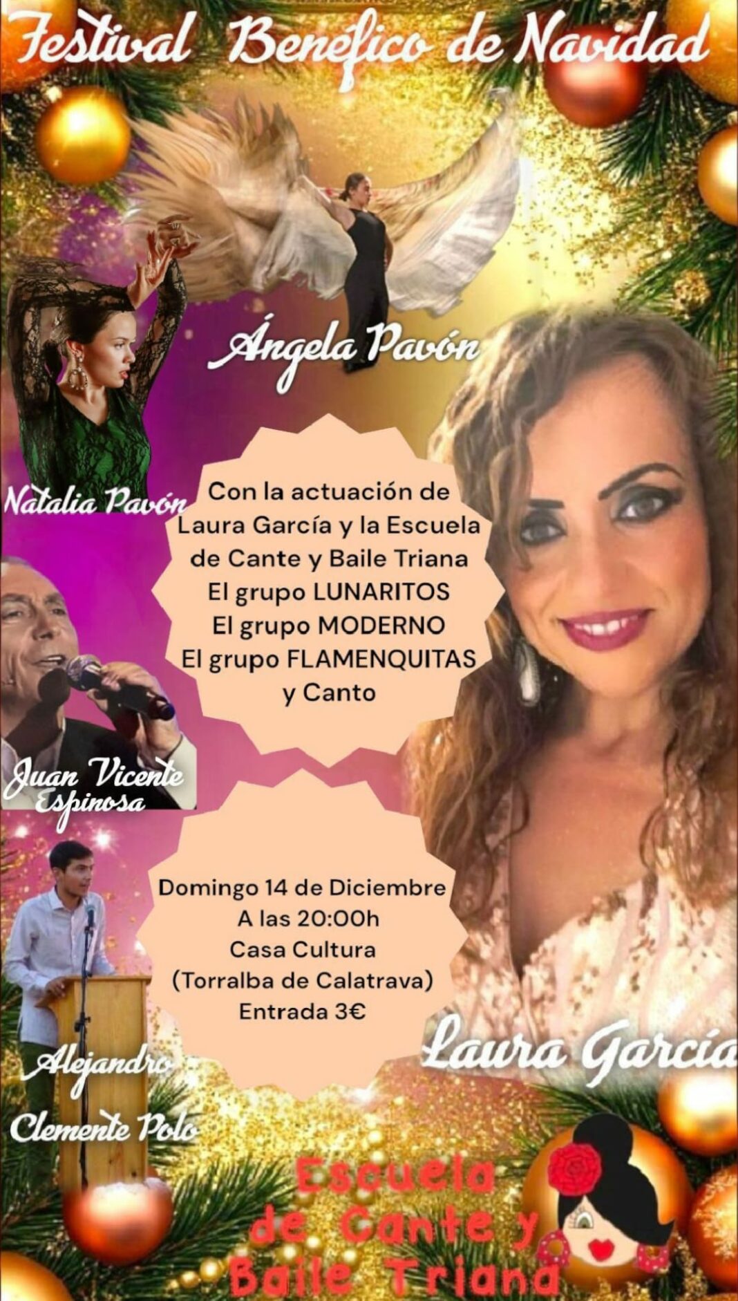 Eduardo Muñoz Martínez.- Para el próximo domingo, día 14, de este mes de diciembre, se anuncia una gran Gala Benéfica, en las antevisperas de la Navidad, en la Casa de Cultura de Torralba de Calatrava, organizada por la contrastada cantaora local, Laura García, que a partir de las 20:00 horas, y por la entrada simbólica de 3 euros, permitirá disfrutar de una extraordinaria velada de variedades.