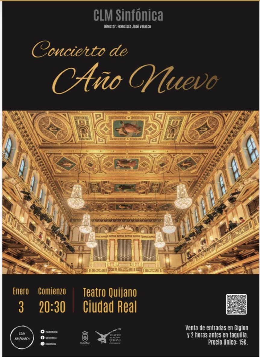 Anselmo Alañón Alcaide.– El próximo 3 de enero el Teatro Quijano de Ciudad Real acogerá el concierto de Año Nuevo 2026 a las 20.30 horas. Tercera edición de nuestro concierto de año nuevo, un evento anual que se ha consolidado como una tradición esperada por parte del público, con entradas agotadas en sus dos ediciones anteriores.