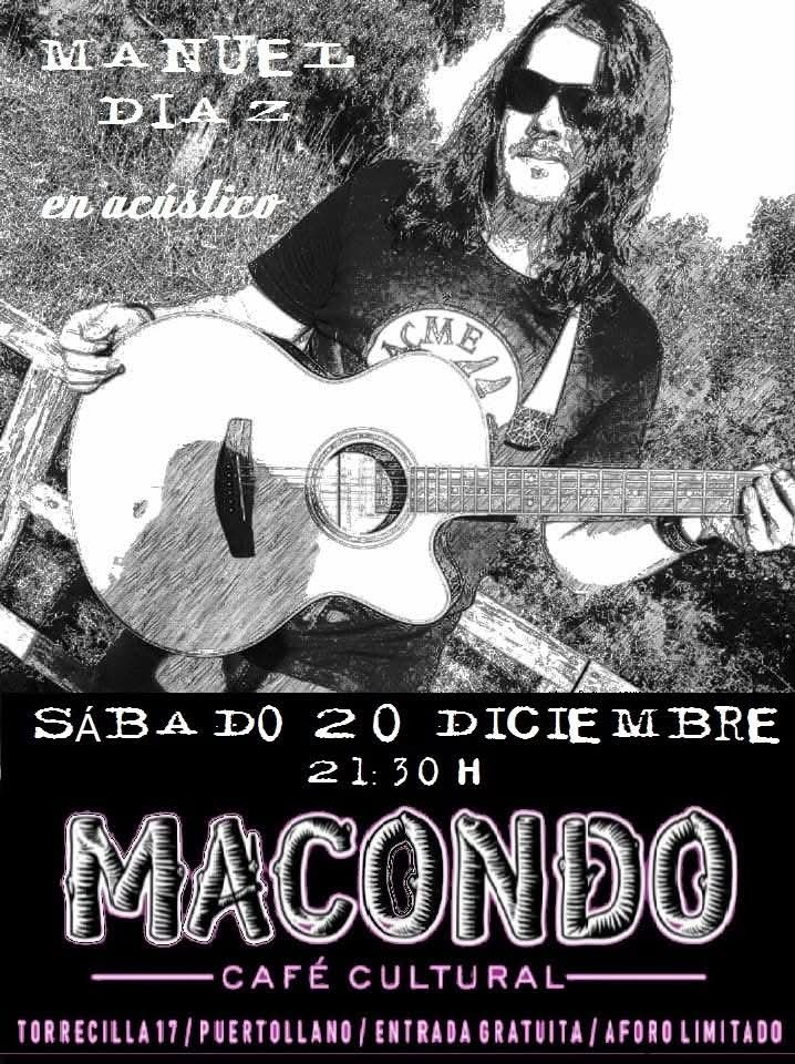 Manuel Díaz actuará en Macondo Café Cultural (C/ Torrecilla, 17) de Puertollano, a las 21.30 horas del próximo sábado 20 de diciembre.