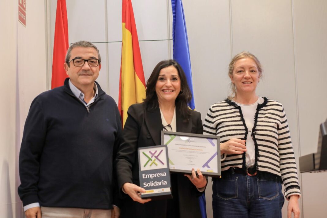 La Plataforma del Tercer Sector, que representa a cerca de 28.000 entidades sociales, ha distinguido a la Fundación Globalcaja HXXII con ámbito territorial en Castilla-La Mancha, como Embajadora de la Casilla Empresa Solidaria, en reconocimiento a su compromiso con esta iniciativa solidaria. Ha recogido el reconocimiento la directora general de la fundación, Carla Avilés, de manos de José Antonio Romero, presidente de la Mesa del Tercer Sector de Castilla-La Mancha, en el transcurso de la asamblea general de la plataforma, presidida por Luciano Poyato.