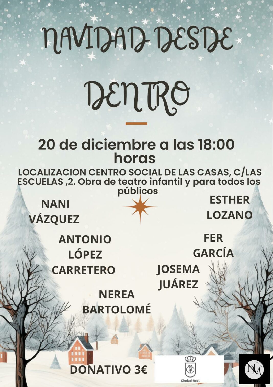 El Centros Social de Las Casas acogerá este sábado (en la planta 1, sala de cine) la primera representación de la obra de teatro ‘Navidad desde dentro’. Se trata de una obra de carácter infantil pero apta para todos los públicos: padres, jóvenes y personas mayores.