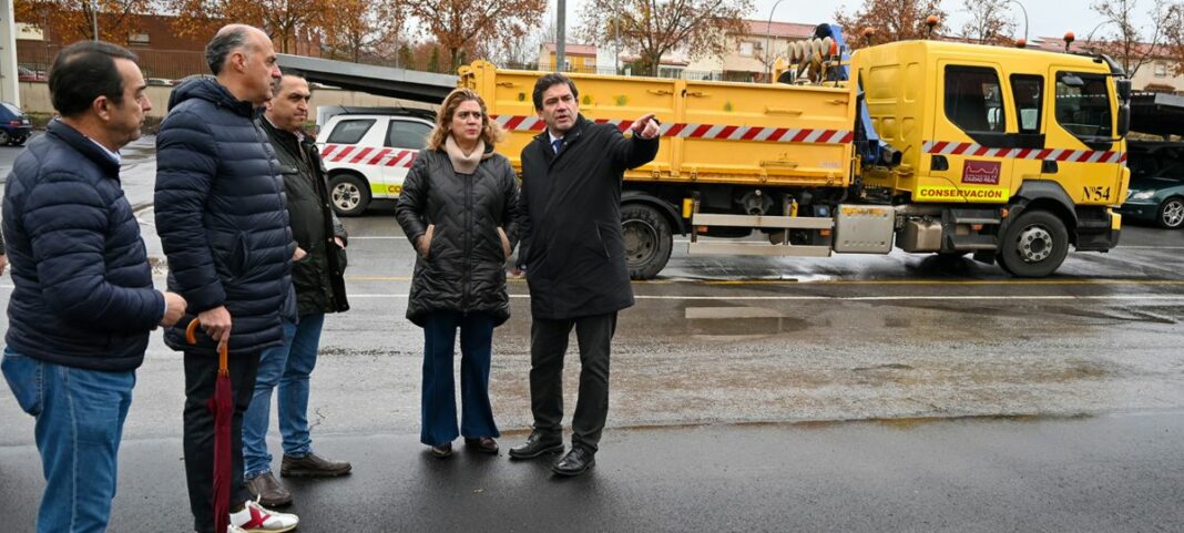 Acompañado por la diputada provincial delegada María Isabel Mansilla, Valverde ha recorrido los talleres donde se prestan servicios de mantenimiento y apoyo logístico al parque móvil de la Diputación, que cuenta con 115 vehículos entre turismos y maquinaria, así como las diferentes áreas de trabajo. Durante la visita ha sido informado de que actualmente se almacenan 600 toneladas de sal, en previsión de posibles episodios climatológicos adversos durante el invierno.