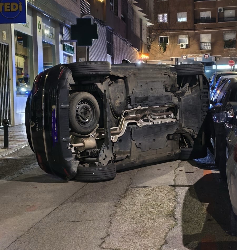 Un vehículo ha volcado en la calle Pablo Neruda de Puertollano en la noche de este viernes después de que la persona que lo conducía perdiera el control y acabara impactando contra otros coches estacionados. Al lugar del suceso se han desplazado efectivos de la Policía Local, que investiga las causas del siniestro. No se han registrado heridos de gravedad, aunque el conductor ha dado positivo en la prueba de alcoholemia.