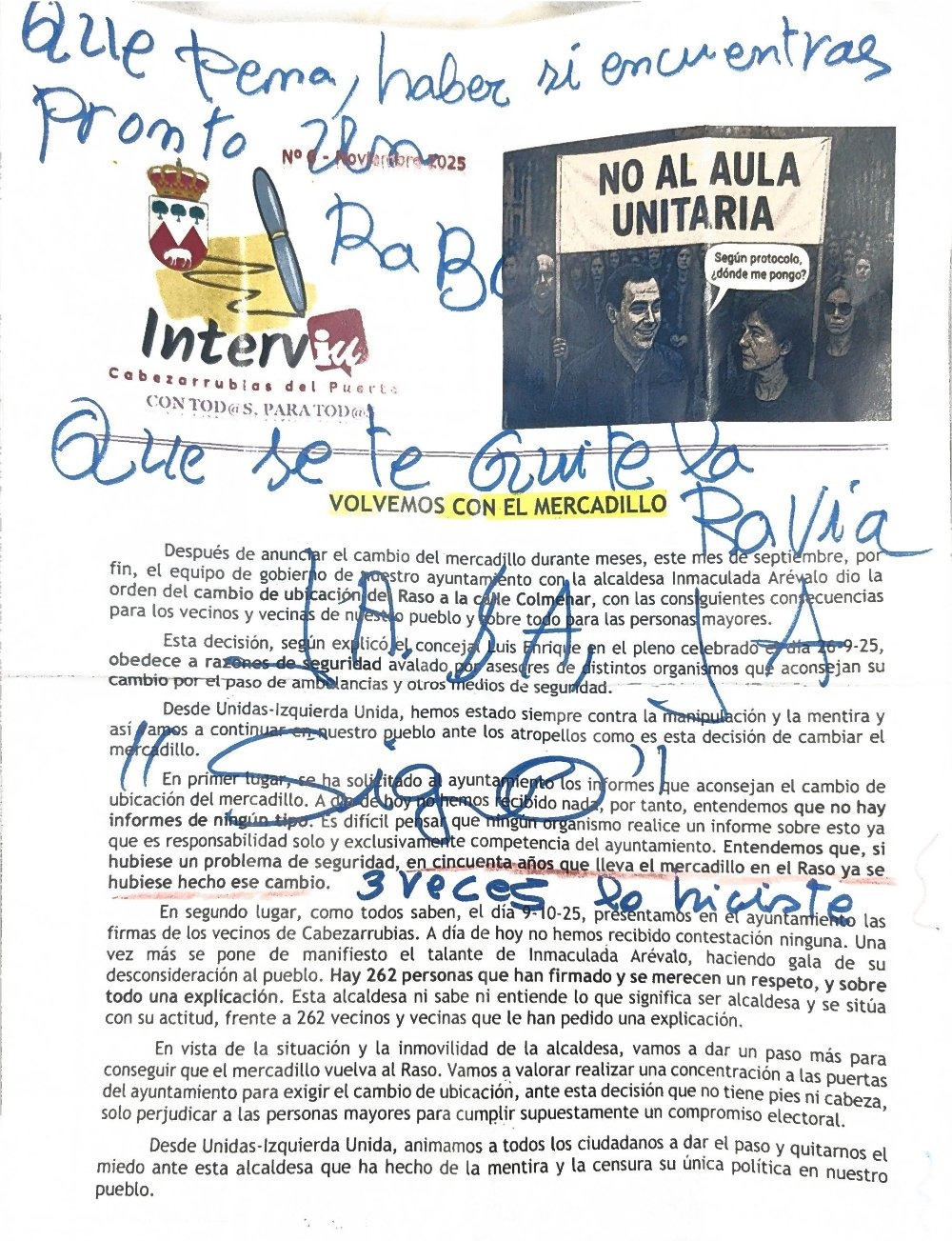 Izquierda Unida confía plenamente en que las autoridades competentes investiguen los hechos denunciados y adopten las medidas necesarias para garantizar la seguridad y la dignidad de la vecina afectada, reiterando su compromiso de seguir trabajando por una política basada en el respeto, la participación ciudadana y la libertad de expresión.
