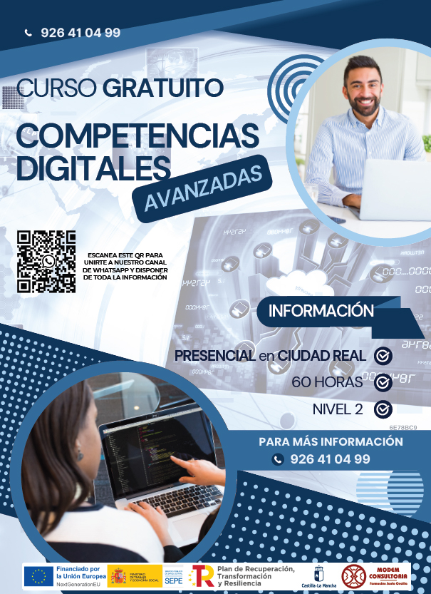 Comenzamos la próxima semana, últimas plazas disponibles, llama ahora al 926 41 24 68 para conseguir tu plaza en el próximo curso de Ciudad Real o escribe a modem@modemconsultoria.com e indica tu teléfono para poder informarte.