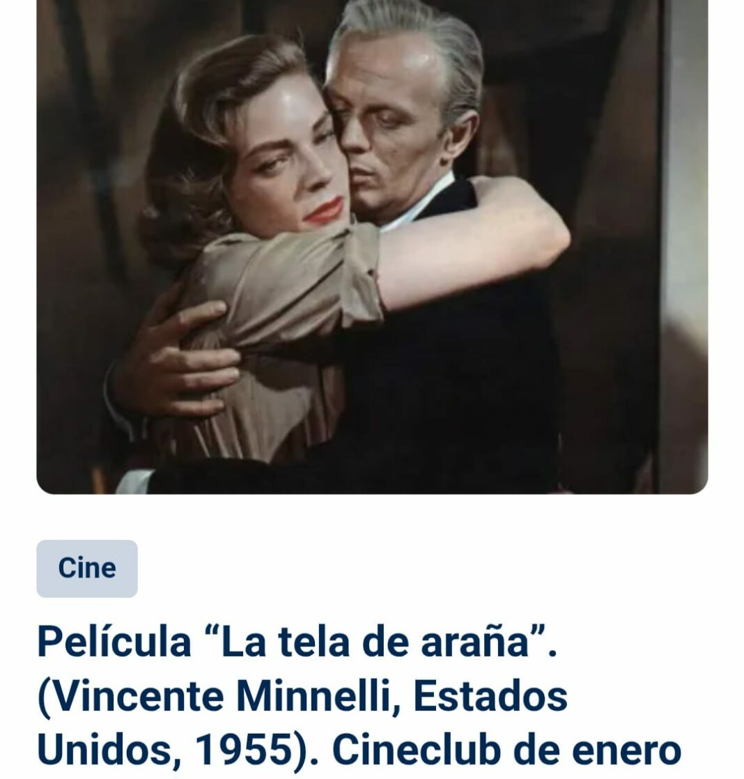 Anselmo Alañón Alcaide.– El próximo 14 de enero en el Cineclub de la Biblioteca Pública del Estado de Ciudad Real se proyectará la película de Vicente Minelli «La tela de araña». Este drama de 1955 transcurre en una prestigiosa clínica psiquiátrica en en la que se entrelazan, complots, aventuras amorosas y desengaños.