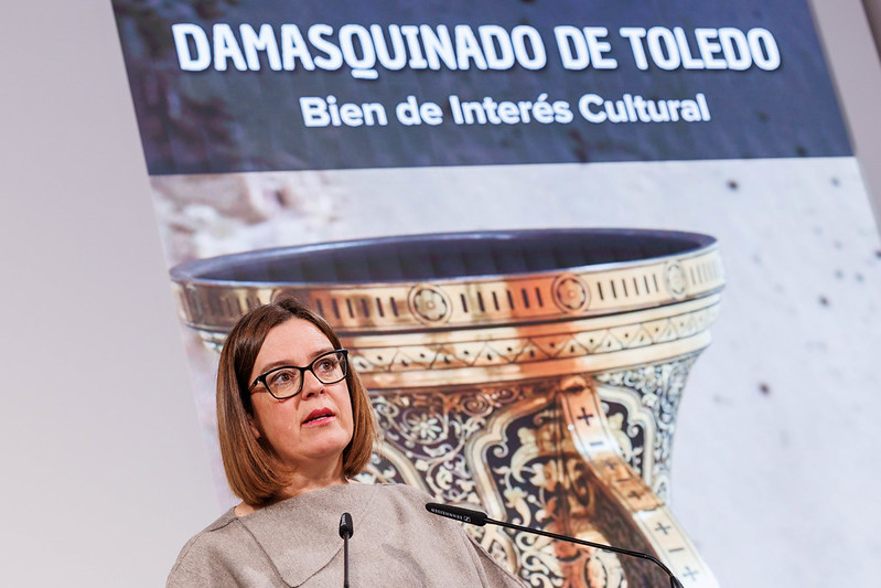 El damasquinado de Toledo pasa a engrosar la lista de Bienes de Interés Cultural de Castilla-La Mancha en la categoría de Bien Inmaterial y “lo hacemos desde el convencimiento de que lo que estamos haciendo es proteger la identidad, la memoria colectiva, pero también el futuro de algo tan importante para la ciudad de Toledo y para la región”.