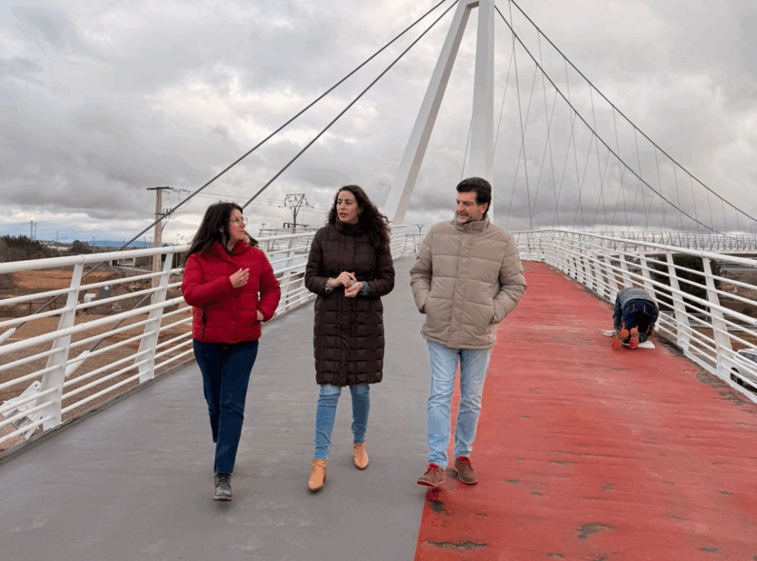 La directora general de Transportes y Movilidad, Lucía Balmaseda y el delegado de Fomento en Ciudad Real, Manuel Martínez, han visitado la nueva pasarela junto con representantes de la empresa constructora responsable de los trabajos, y han instado a la empresa a que subsanen unas deficiencias que se han detectado una vez concluida la obra.