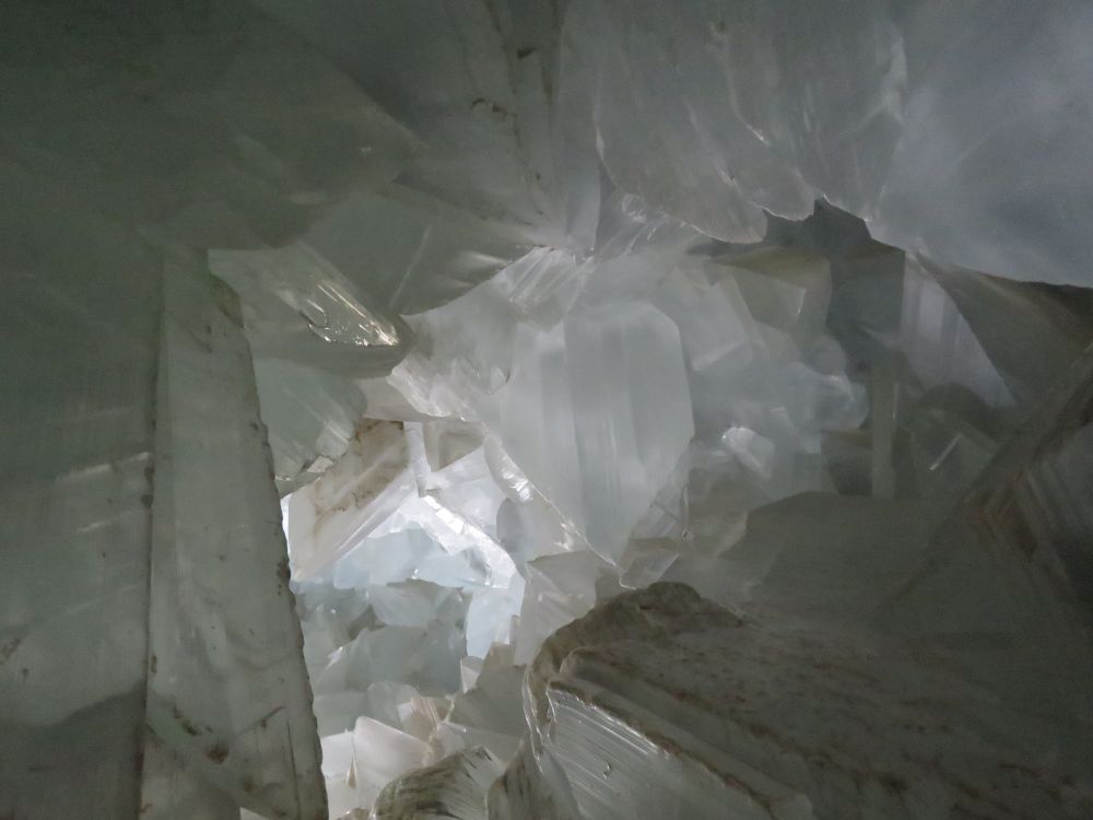 Se trata de una cavidad en una roca dolomítica , de unos 8 metros de longitud por 2 metros de altura tapizada por enormes cristales de yeso, alguno de los cuales llega a medir casi dos metros. Su transparencia y estado de conservación la convierten en una joya de la naturaleza. Constituye un fenómeno único a nivel mundial dadas sus dimensiones y la perfección, tamaño y transparencia de los cristales.
