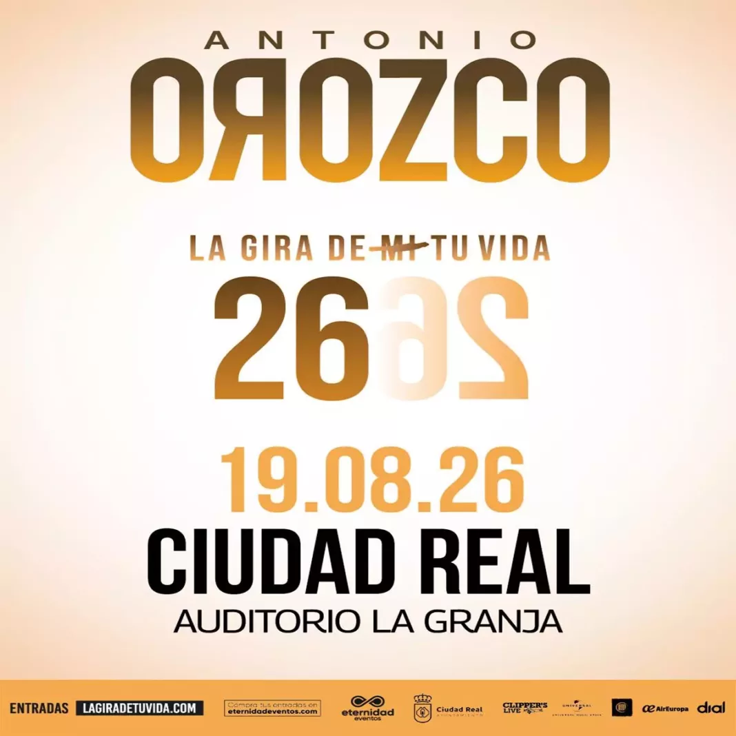 Las entradas para el concierto de Antonio Orozco en Ciudad Real ya están disponibles, una cita que tendrá lugar el 19 de agosto de 2026 en el Auditorio La Granja y que se enmarca dentro de su nueva gira “La Gira De Tu Vida”. El espectáculo llega de la mano de Eternidad Eventos y se suma a una de las propuestas musicales más relevantes del panorama nacional.
