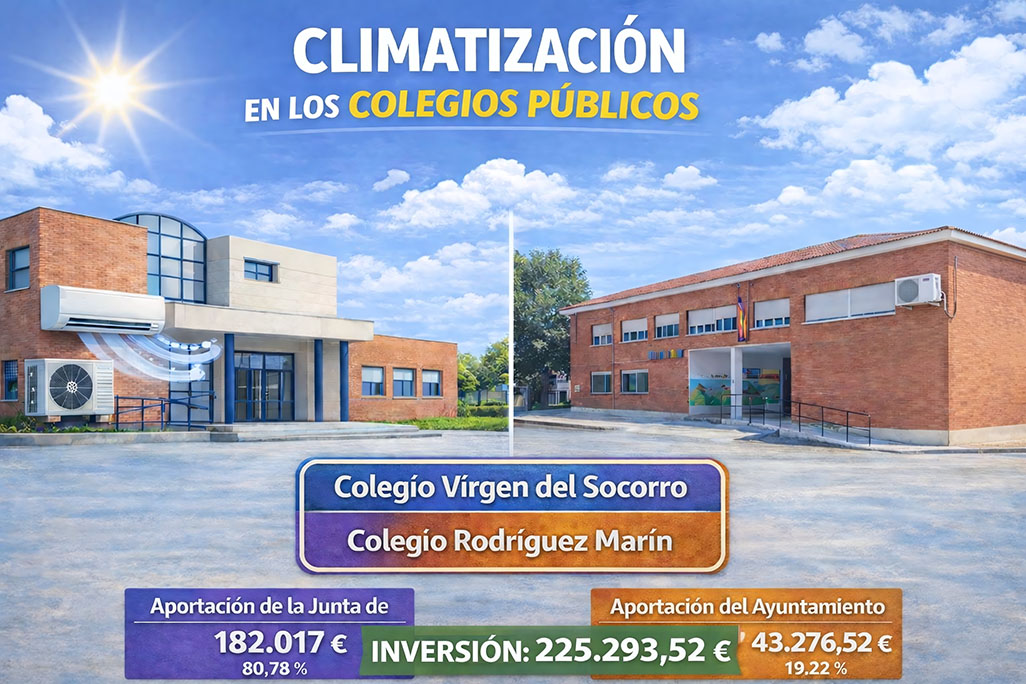 En el CEIP ‘Virgen del Socorro’, con un presupuesto de 127.328 euros, se instalarán seis equipos de aerotermia y en el CEIP ‘Rodríguez Marín’, con una inversión de 97.965,52 euros, se dispondrán de otras cuatro unidades similares trabajando en cascada.