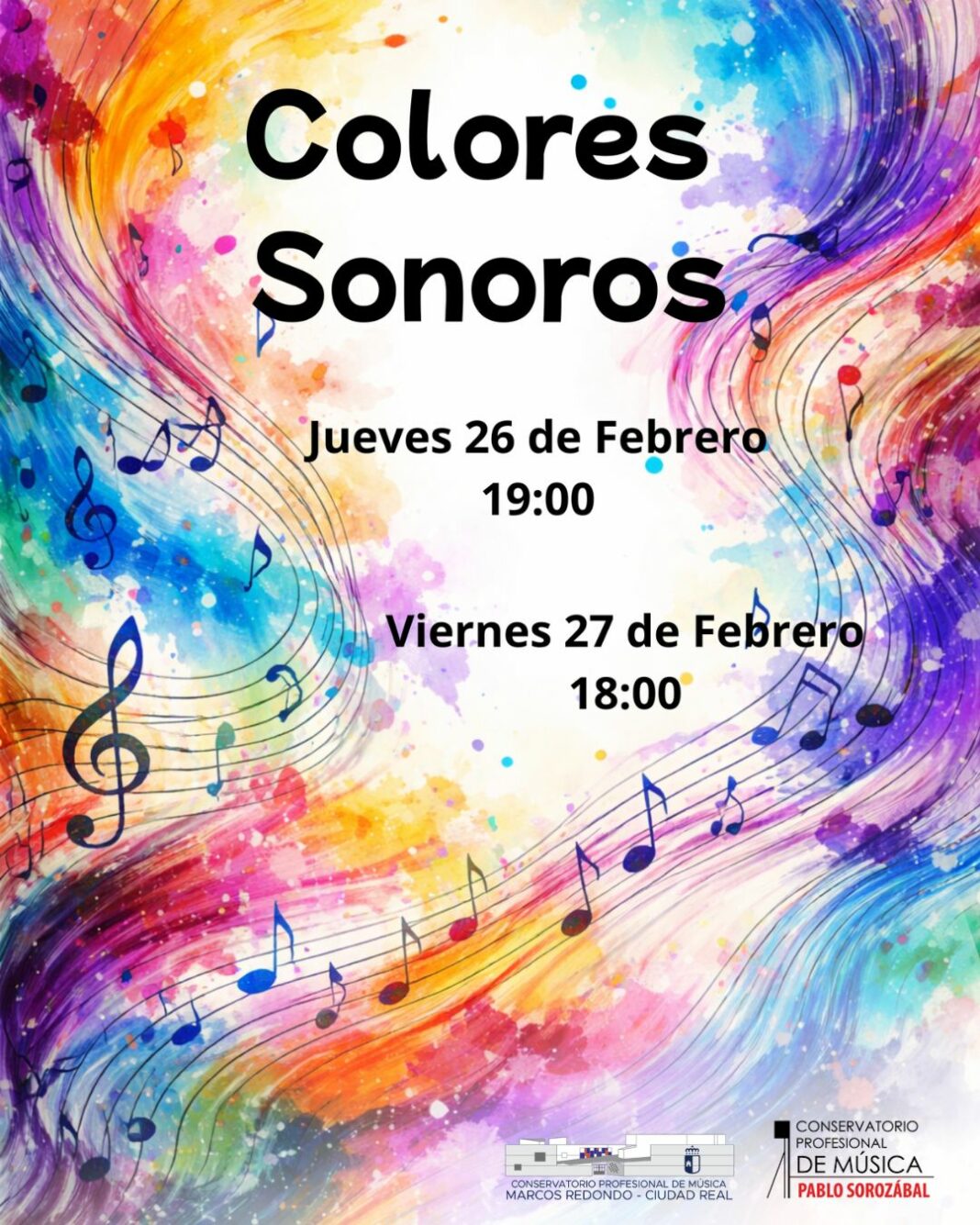 El Auditorio Manuel de Falla del CPM Marcos Redondo será el escenario de dos conciertos extraordinarios titulados “Colores Sonoros 2026: Música y Sociedad”, que se celebrarán el jueves 26 de febrero a las 19.00 horas y el viernes 27 de febrero a las 18.00 horas.