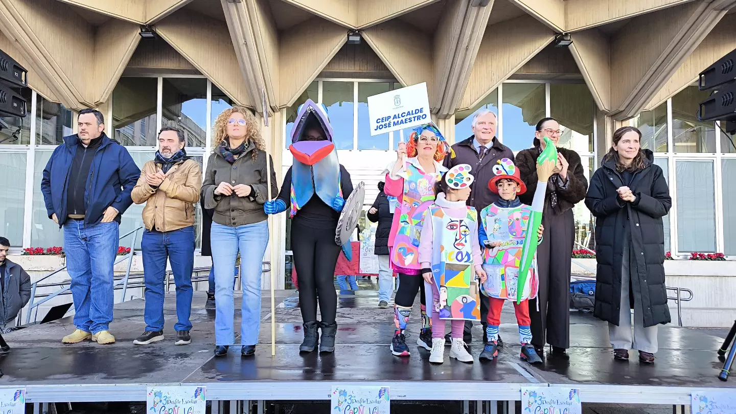 En la Plaza Mayor, el alcalde, acompañado por los concejales del equipo de Gobierno y miembros de la Corporación, ha hecho entrega a cada uno de los centros participantes de una placa conmemorativa del Carnaval de Ciudad Real como recuerdo institucional de su implicación y esfuerzo, un gesto que ha sido recibido con entusiasmo por docentes y alumnado.