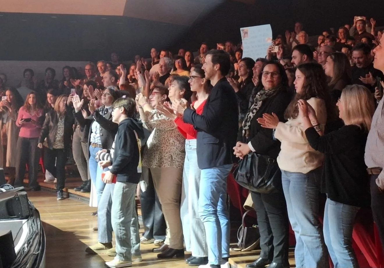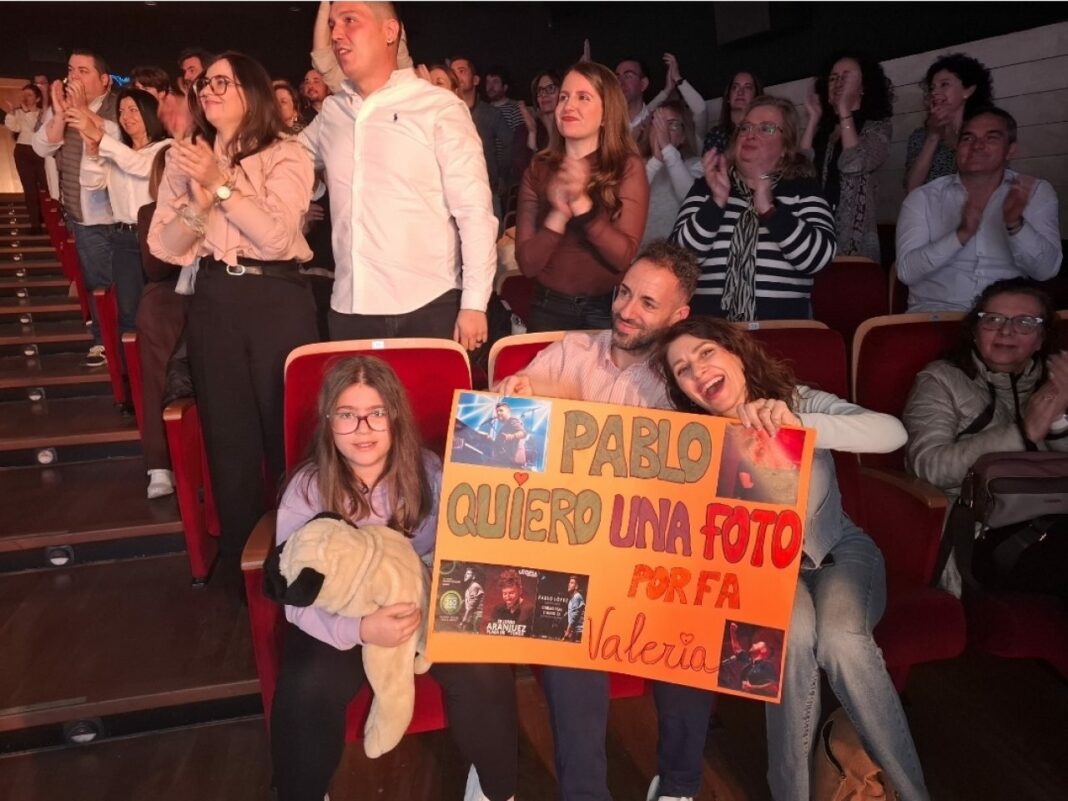 Pablo López recordó que hace diez años por primera vez vino a Puertollano casi con las manos vacías y ahora vuelve con un público entregado y en pie, que acompañó en coro en cada una de sus composiciones, que piropeó al artista, de fans que perdieron el miedo a decir a viva voz que llenarían su cara a besos y que soñaban con una foto junto al creador de algunas de las letras que llenan su vida de sentido.