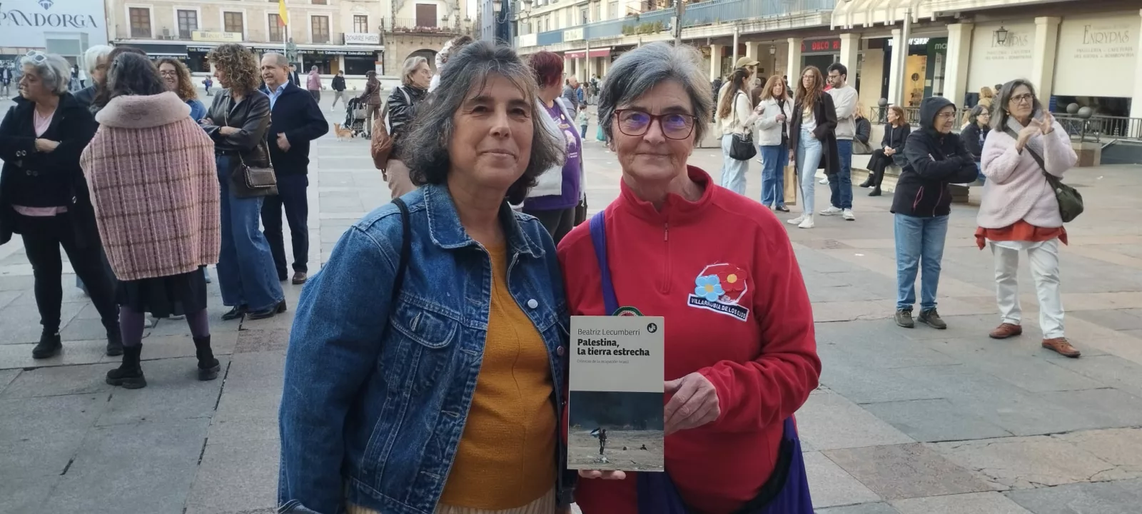 Por último Rosario, de Ciudad Real, me explicó en qué iba a consistir la representación teatral: «Vamos a ver unos fragmentos basados en el libro de Beatriz Lecumberri que se llama ‘Palestina, la tierra estrecha’ y se basa en una serie de testimonios de personas palestinas que cuentan sus dramáticas vivencias y no solo mujeres palestinas sino también mujeres israelíes que están en contra del genocidio e incluso vivencias de algunos militares contrarios a lo que está haciendo su propio gobierno.»