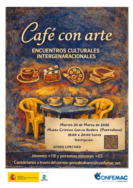 La Confederación estatal para mayores activos (Confemac) celebrará en el Museo Cristina García Rodero de Puertollano el programa “Café con arte”, un encuentro intergeneracional para el envejecimiento activo a través de la cultura compartida. Una iniciativa gratuita que reunirá a personas jóvenes de 18 a 30 años y personas mayores de 65 años en un espacio de diálogo, cultura y participación.