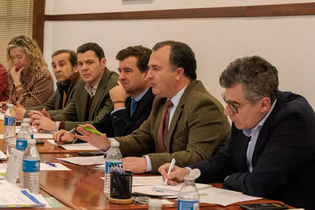 El presidente del Grupo Parlamentario VOX, David Moreno, junto a los diputados regionales Luis Blázquez y Francisco Cobo, y el diputado nacional Ricardo Chamorro, han mantenido una reunión con representantes de FERGUALT y de la Comunidad de Usuarios de Aguas Subterráneas del Alto Guadiana para analizar la situación que atraviesan agricultores y ganaderos de la región por culpa de la falta de un Plan Nacional del Agua, tal y como propone VOX.