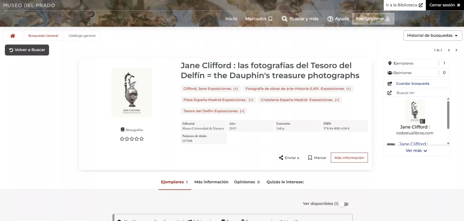 Foto 3: Enlace a las obras de Jane Clifford en el catálogo de la Biblioteca del Museo del Prado.